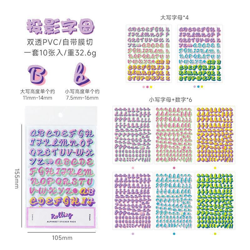 컬러 편지 스티커 시리즈 손 계정 스티커 귀여운 디지털 어린이 입체 스티커 방수 pvc goo 카드 재료 종이스토어 가기