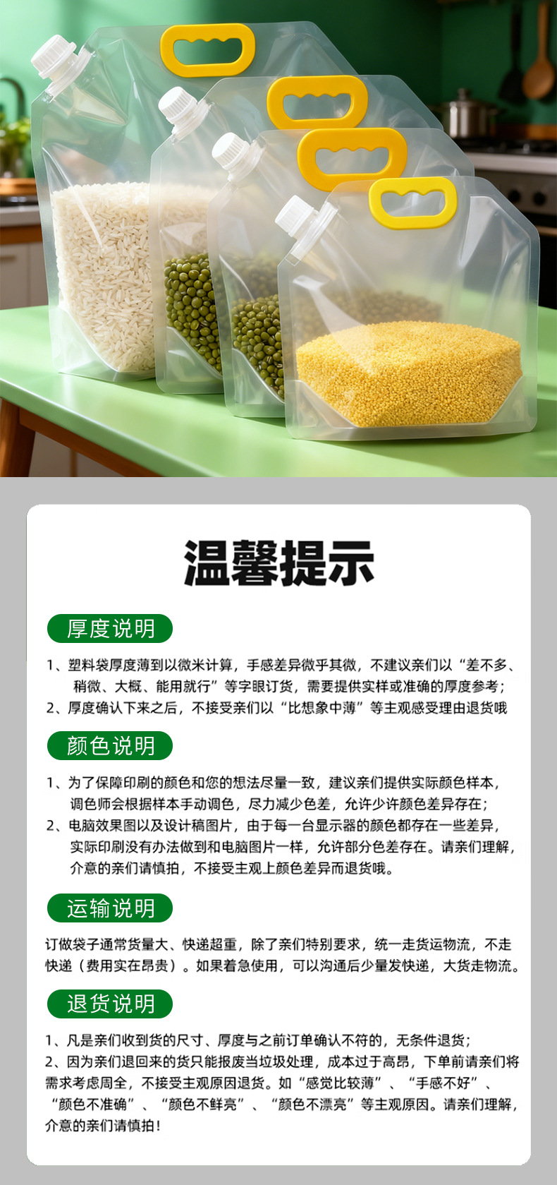 재고 곡물 포장 백 쌀 기장 대용량 보관 가방 방충 방습 핸드백 보관 독립형 가방스토어 가기