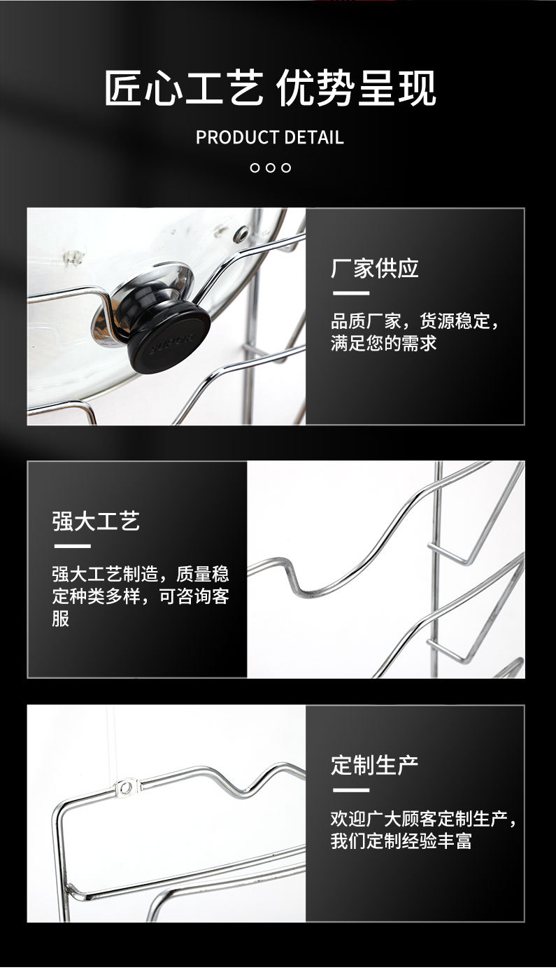 가정용 스테인레스 스틸 주방 용품 다기능 다층 벽걸이 형 냄비 커버 랙 전기도금 도마 도마 보관 랙