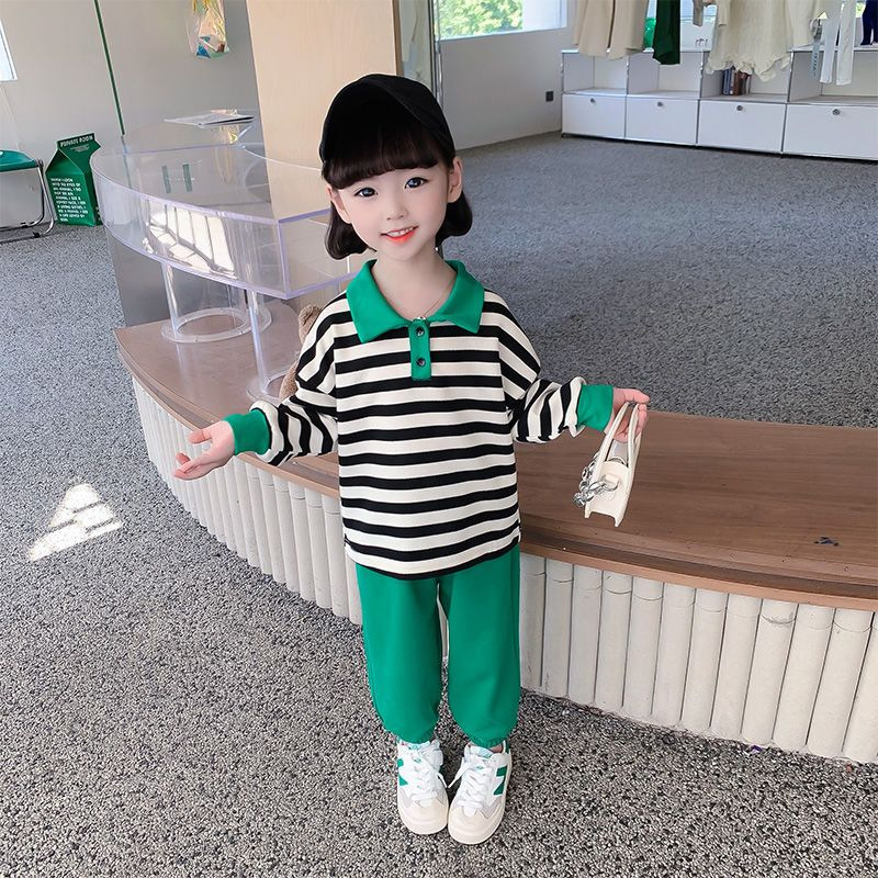스웨터 면 2023 신상품 세트 세련된 소녀 아기 중간 크기의 긴팔 캐주얼 투피스 패션 세트스토어 가기