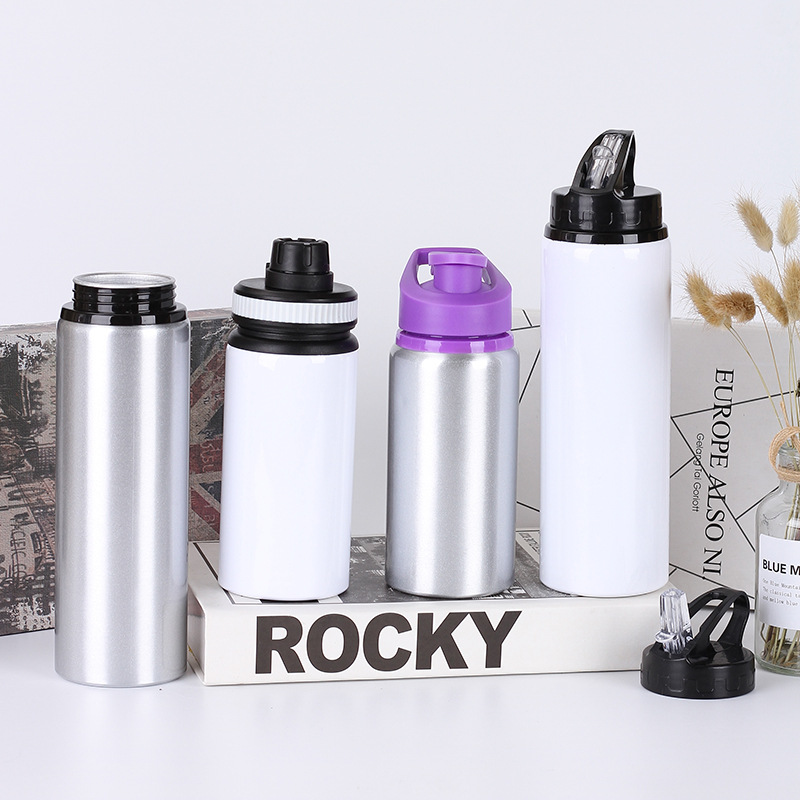 밀짚 여행 등산 주전자 자동차 휴대용 알루미늄 컵 도매 샘플 없음 단색 야외 알루미늄 스포츠 주전자