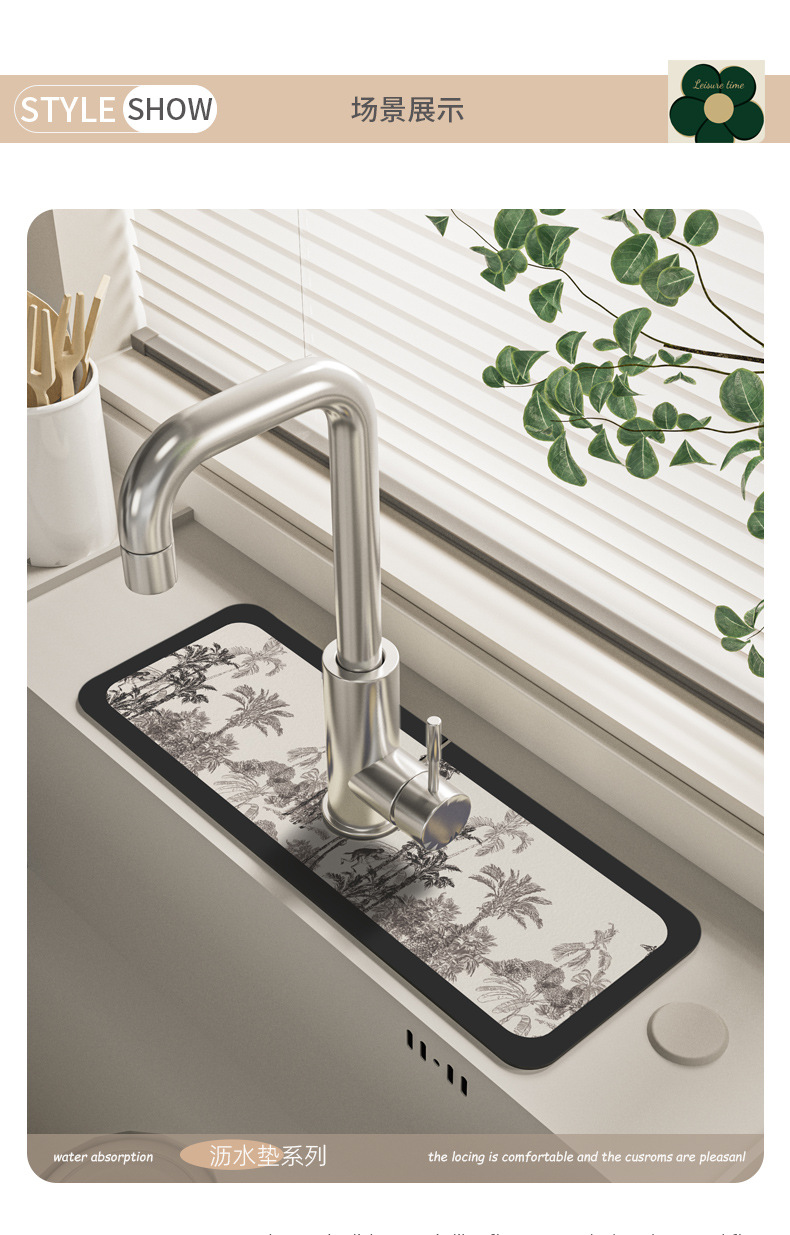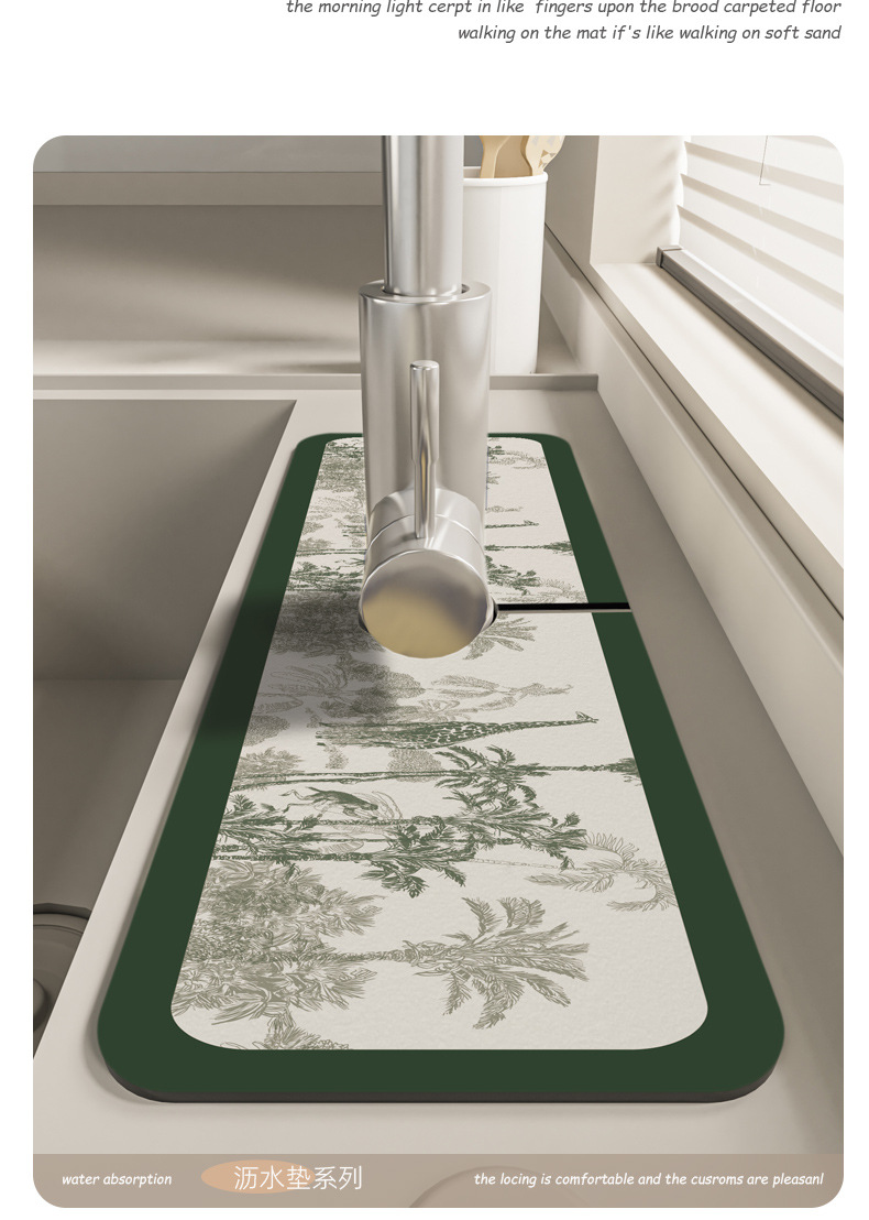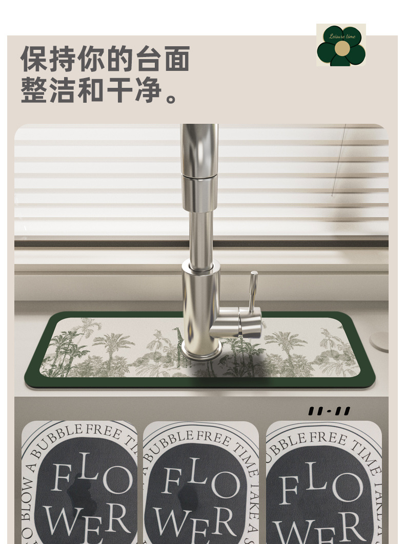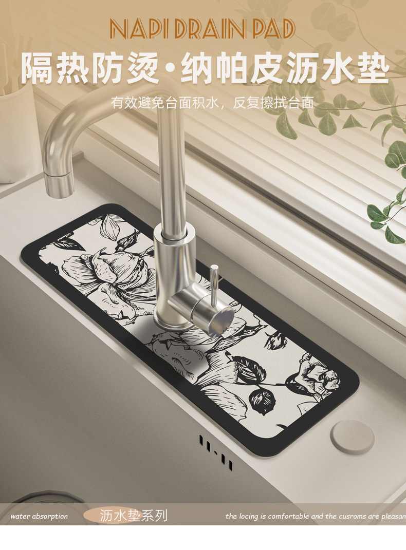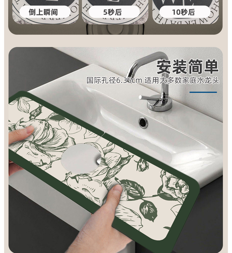 주방수전흡수패드, 욕실싱크대 배수패드, 규조토머드, 닦아내기, 곰팡이방지, 속건패드