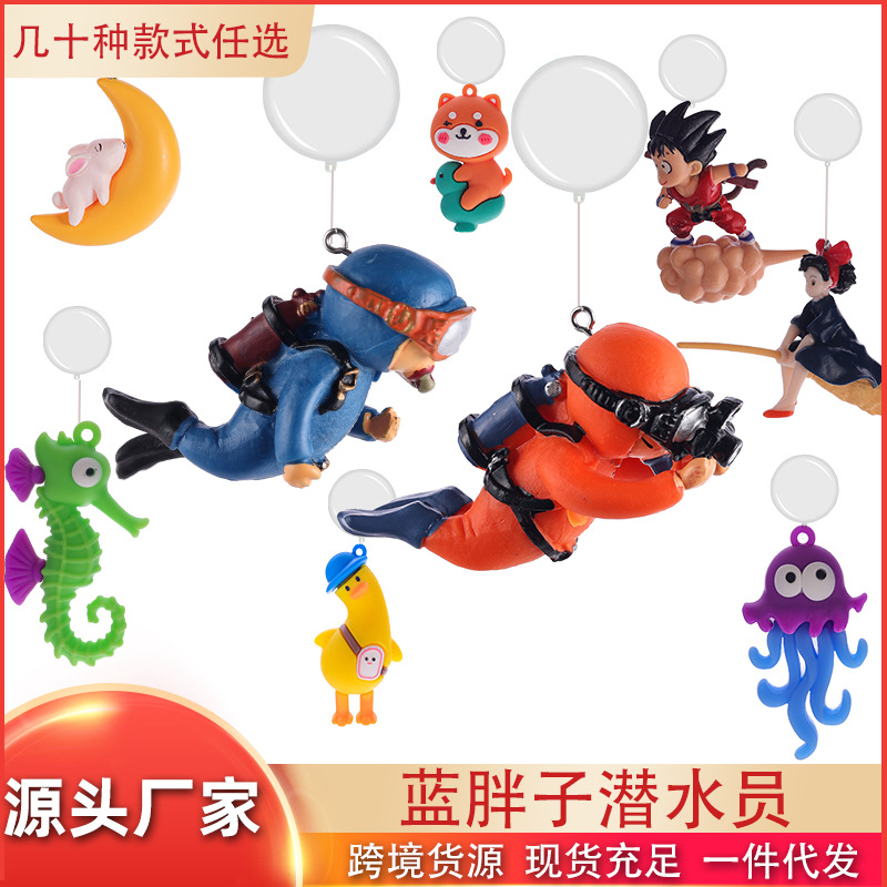 블루 팻 다이버 어항 풍경 장식 수족관 부동 펜던트 인터넷 연예인 작은 빨간 책 오렌지 뚱뚱한 남자