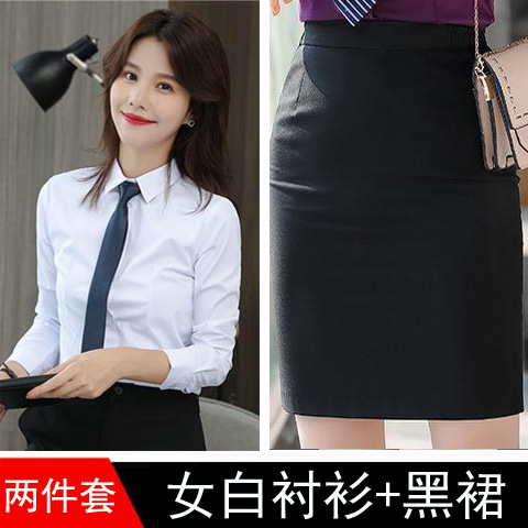 • 여성 긴팔 흰 셔츠 검은 메쉬 스커트 68 위안