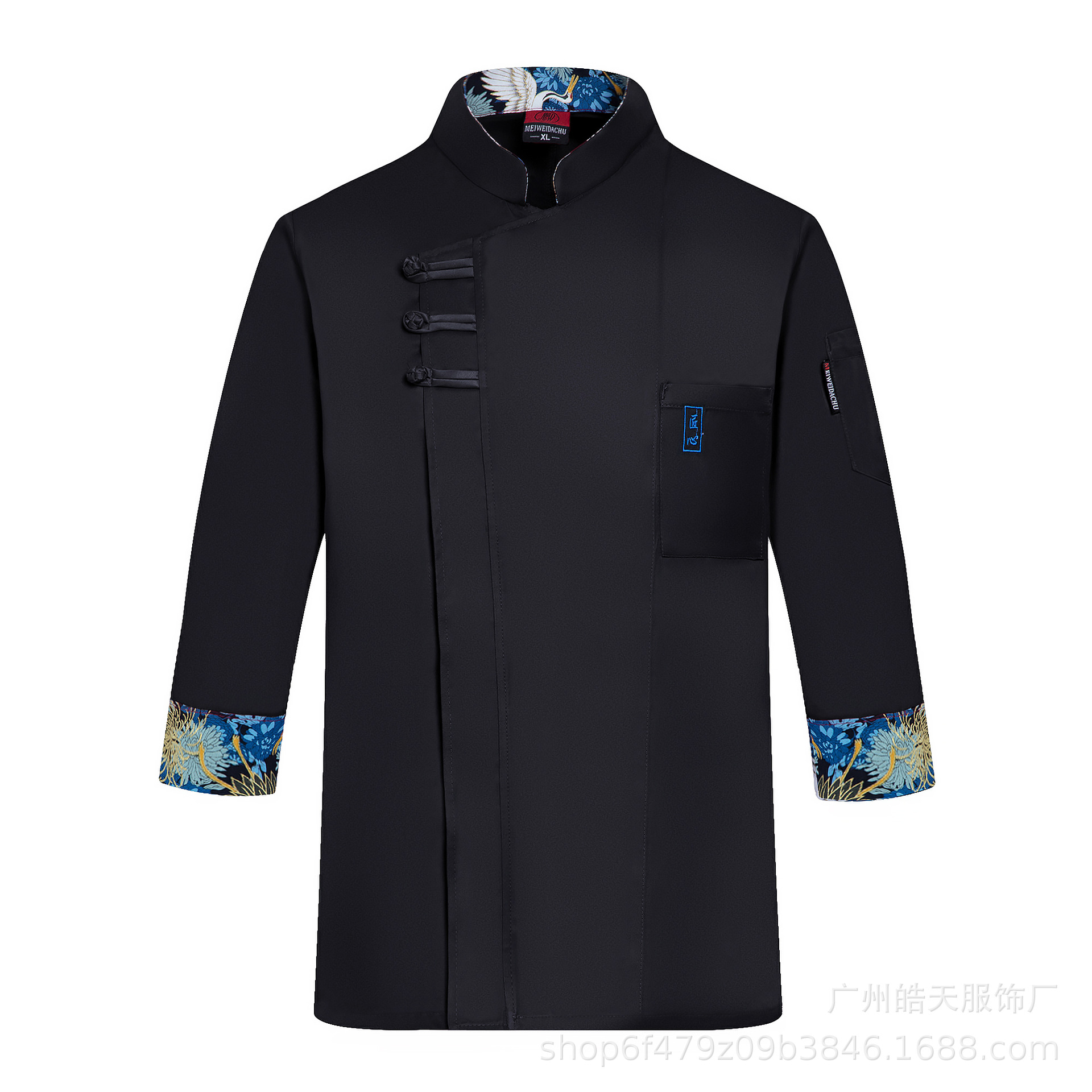 시니어 셰프 작업복 7 점 슬리브 남성용 가을과 겨울 호텔 취사 서양 레스토랑 케이크 샵 후면 주방 베이킹 인쇄스토어 가기