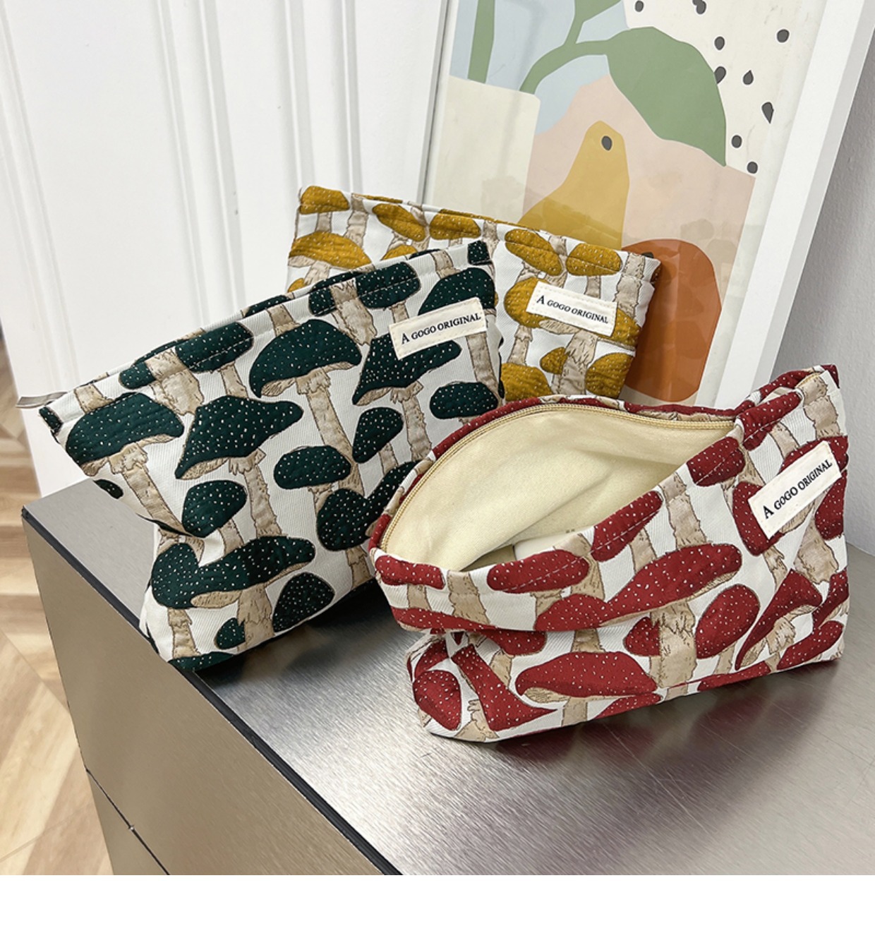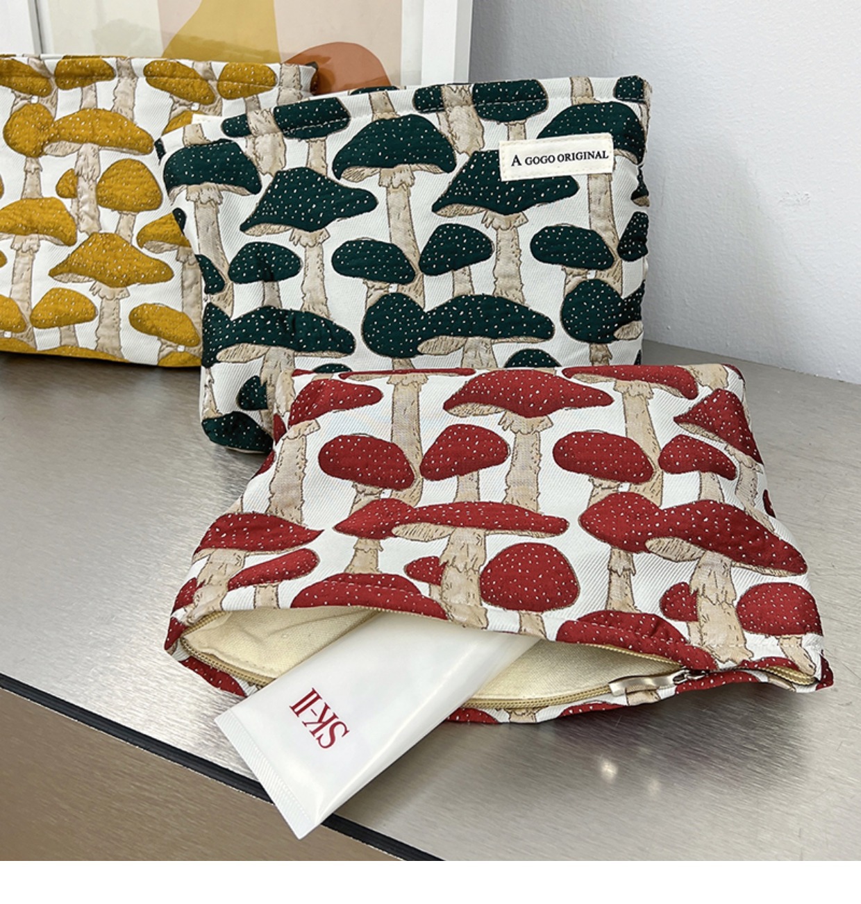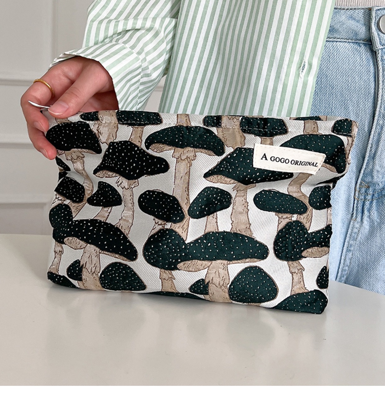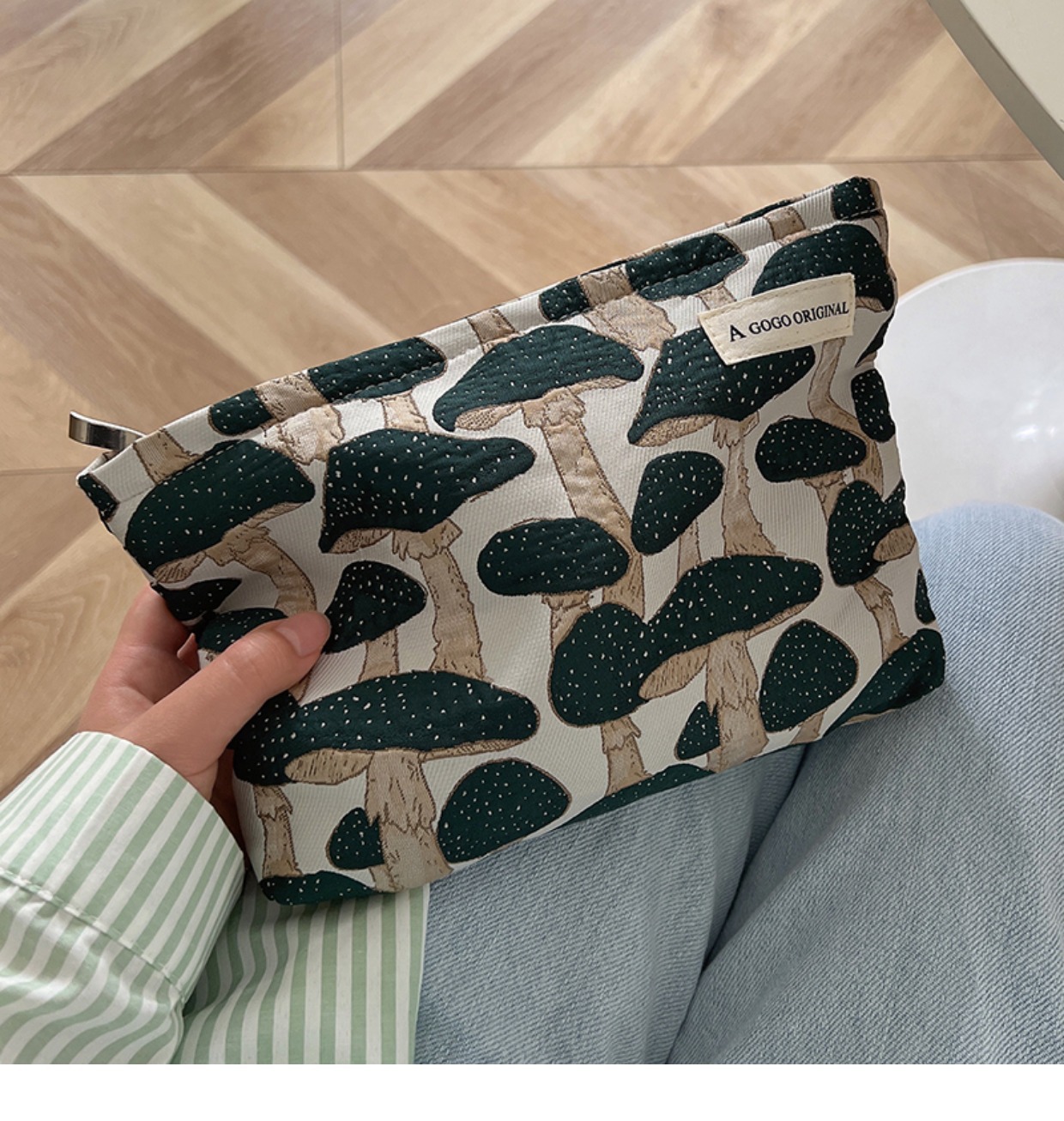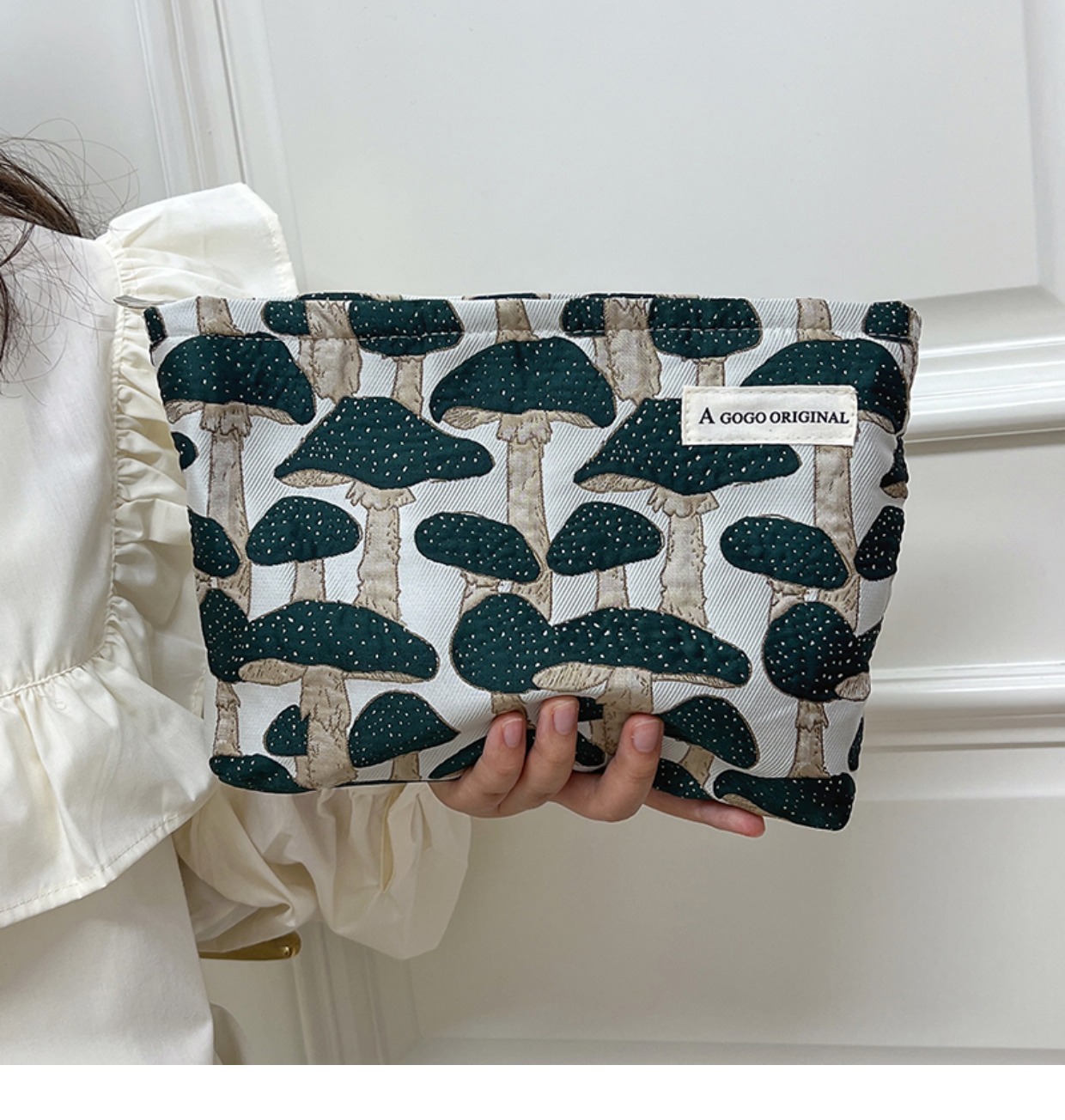 • 메이크업 가방. 마법의 버섯 다크 그린