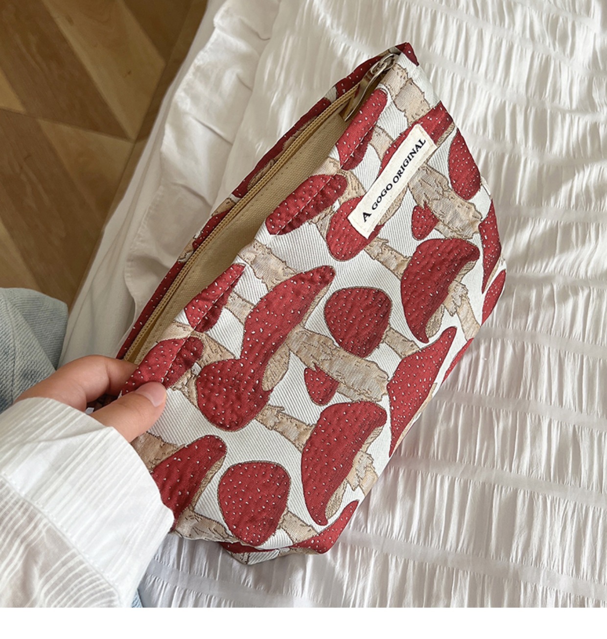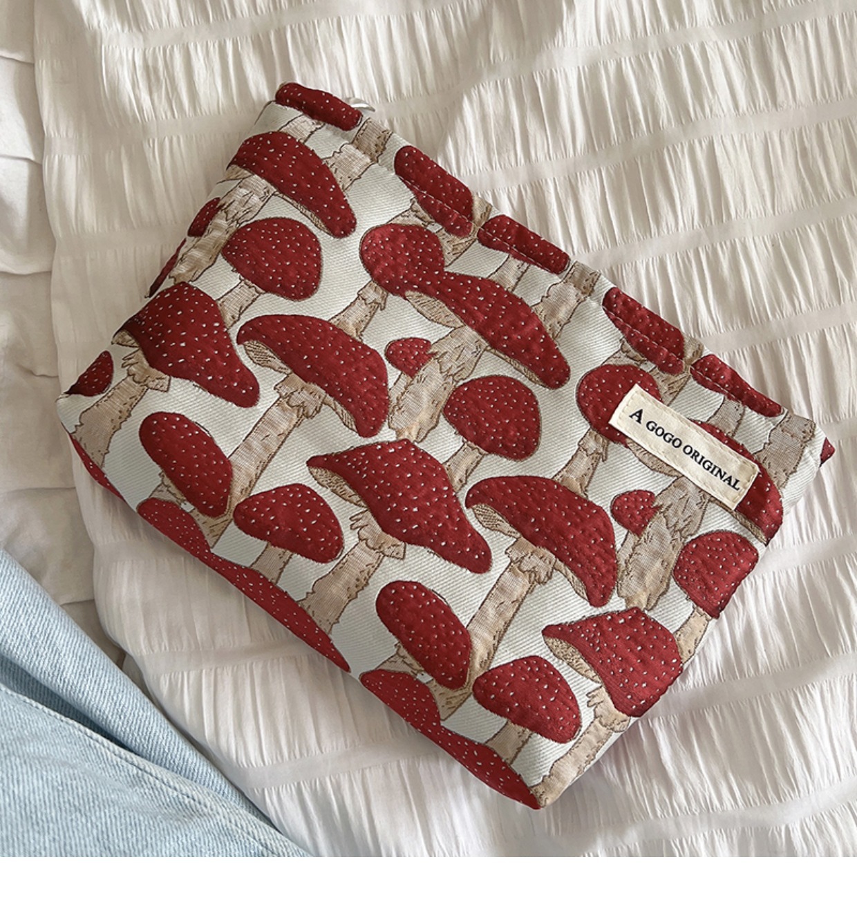 • 메이크업 가방. 매직 버섯 레드