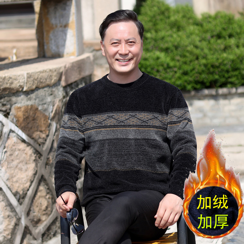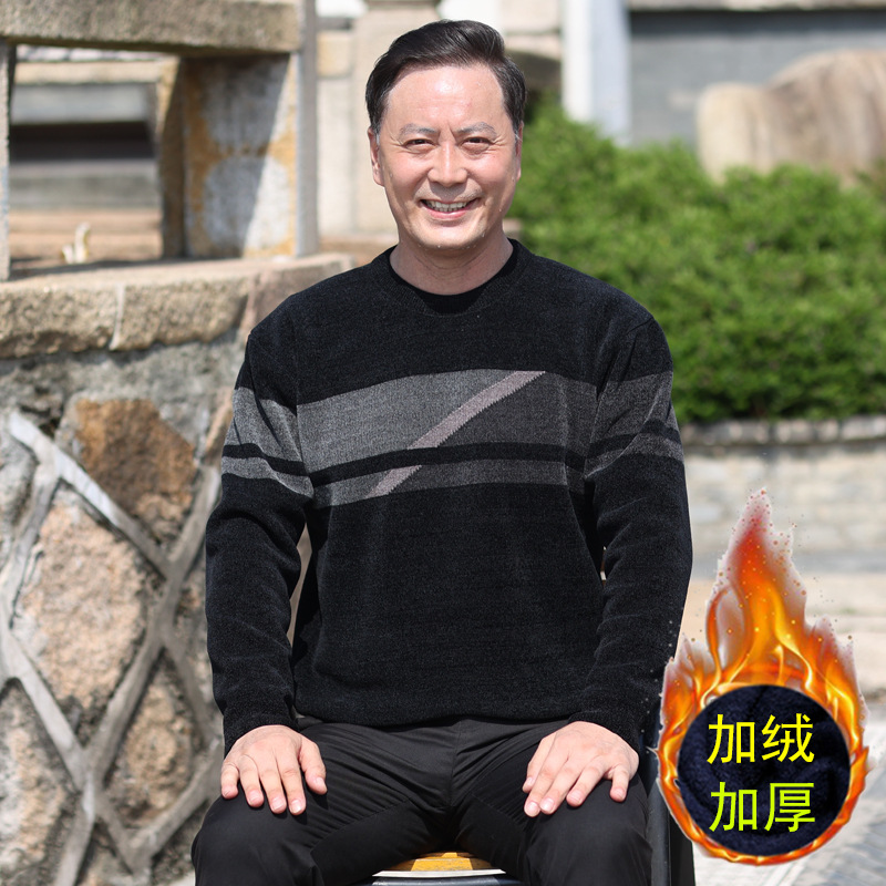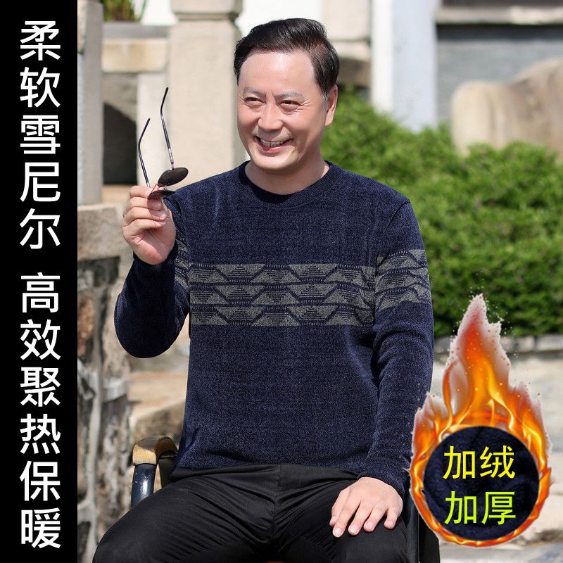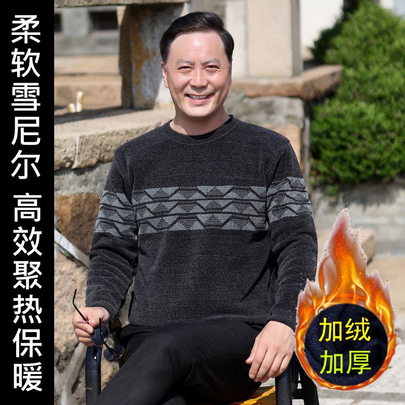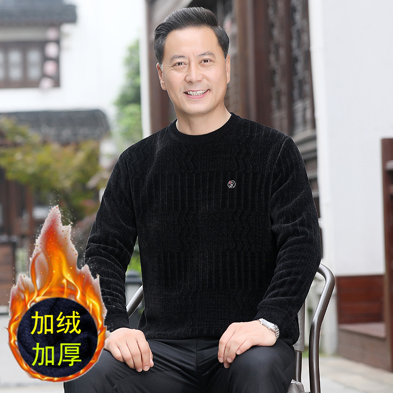중년 아빠의 셔닐 스웨터 남자의 가을과 겨울 원피스 기모 두꺼운 니트 셔츠 베이스 따뜻한 옷