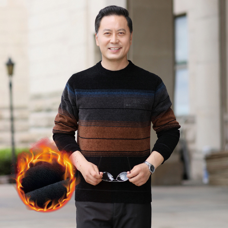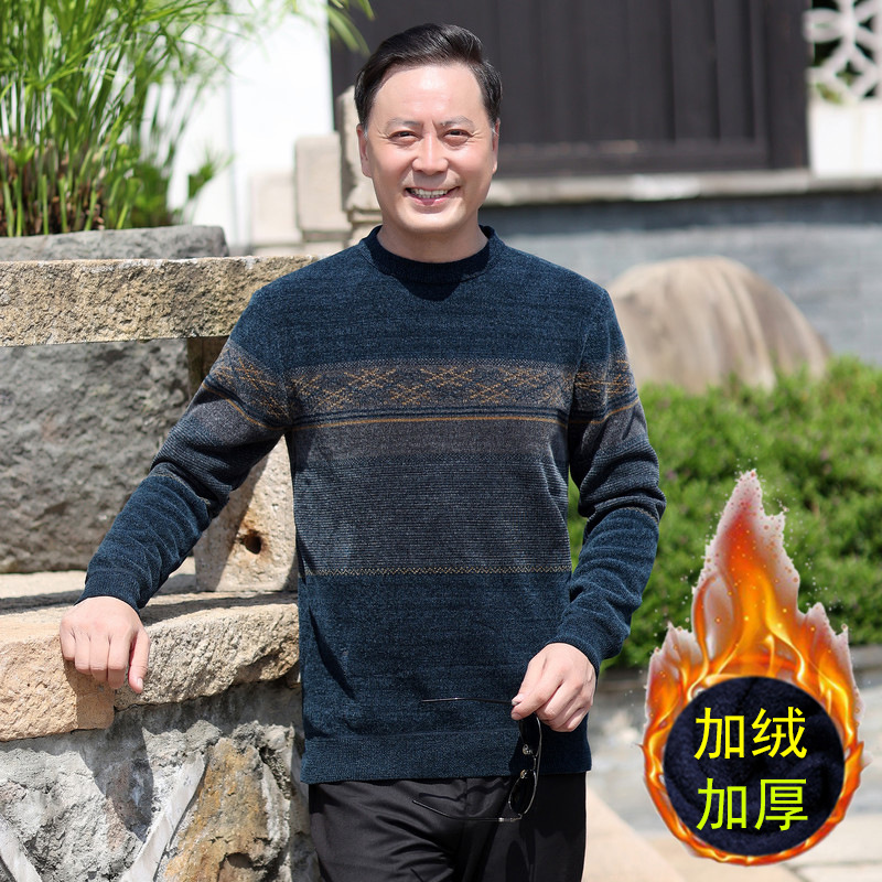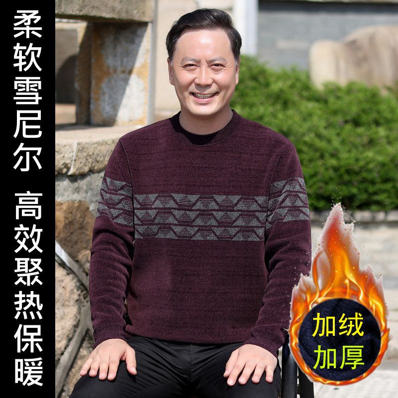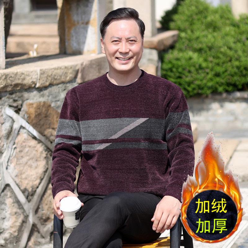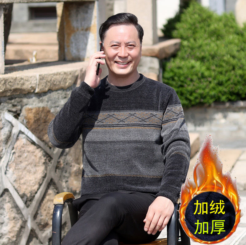 중년 아빠의 셔닐 스웨터 남자의 가을과 겨울 원피스 기모 두꺼운 니트 셔츠 베이스 따뜻한 옷
