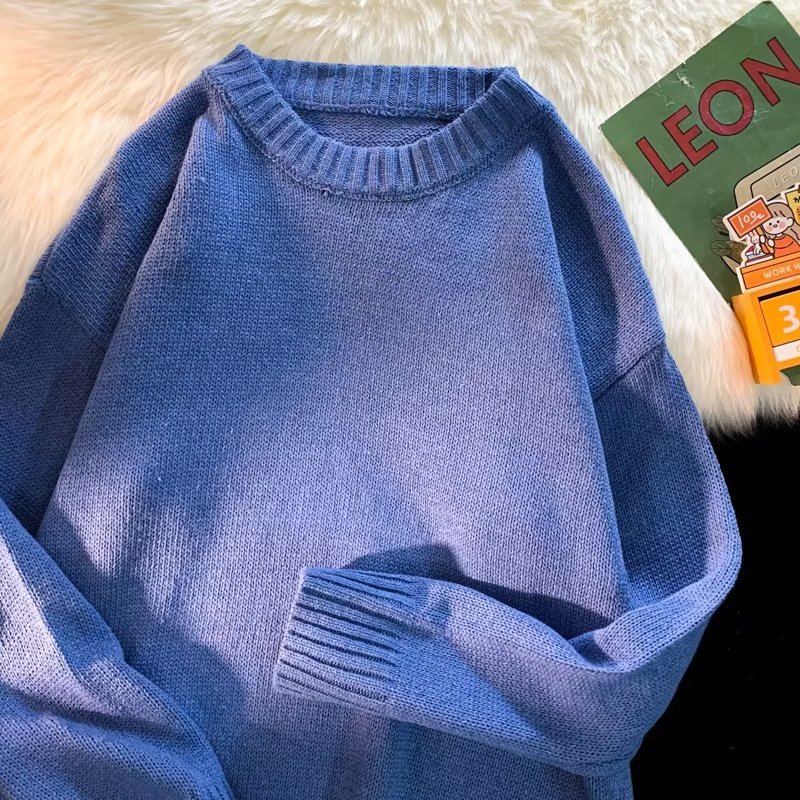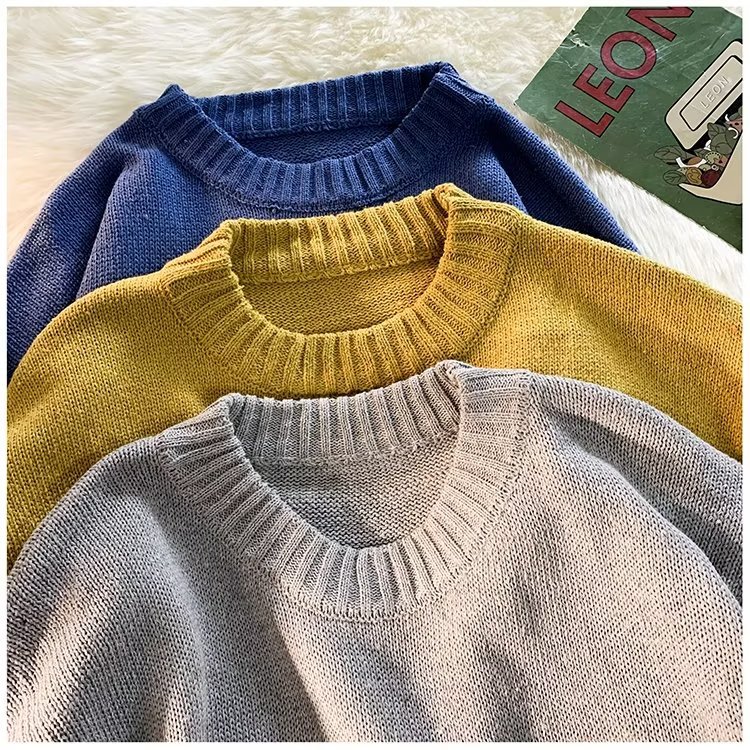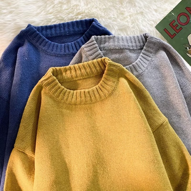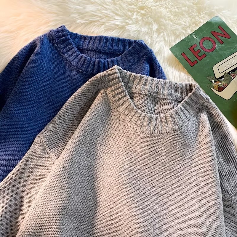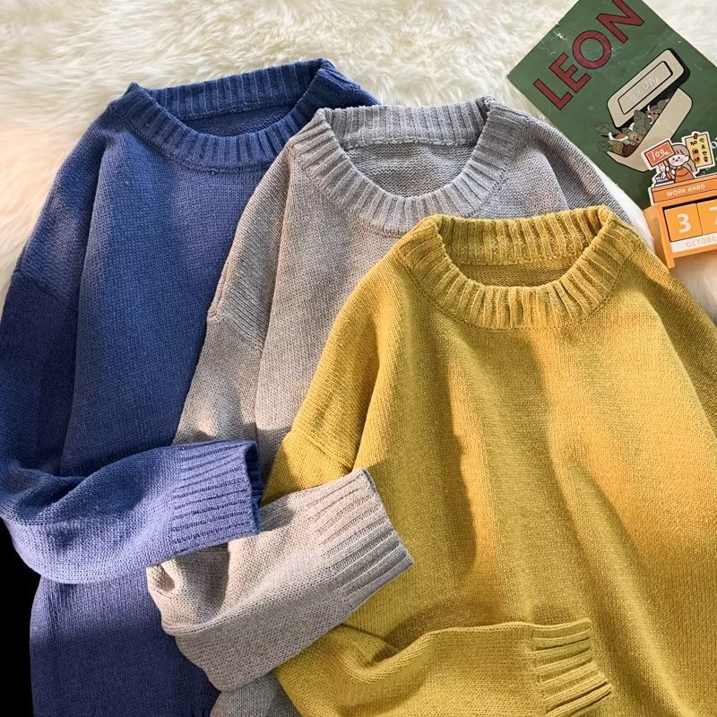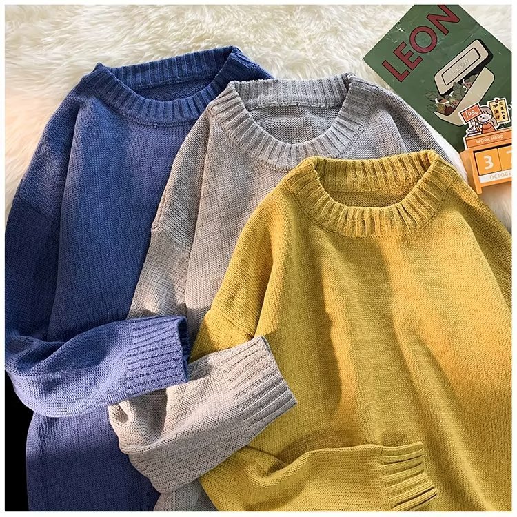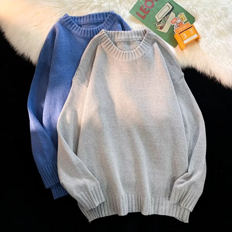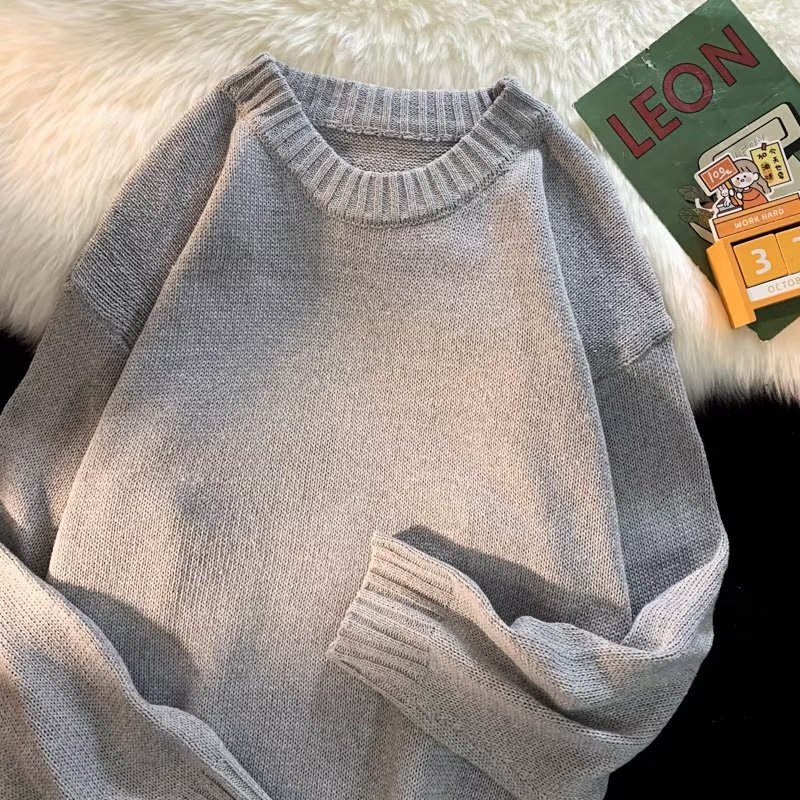 크루넥 스웨터 남성용 봄과 가을 홍콩 스타일 트렌디 브랜드 루즈한 탑 남성용 솔리드 컬러 심플 모든 매치 캐주얼 스웨터스토어 가기