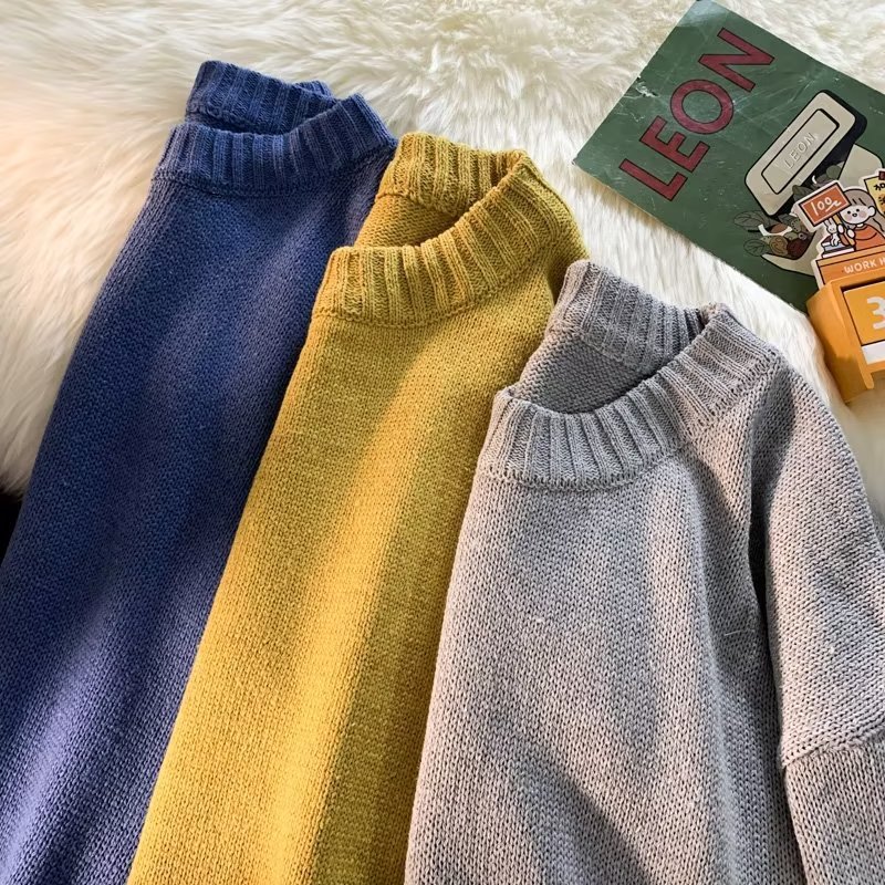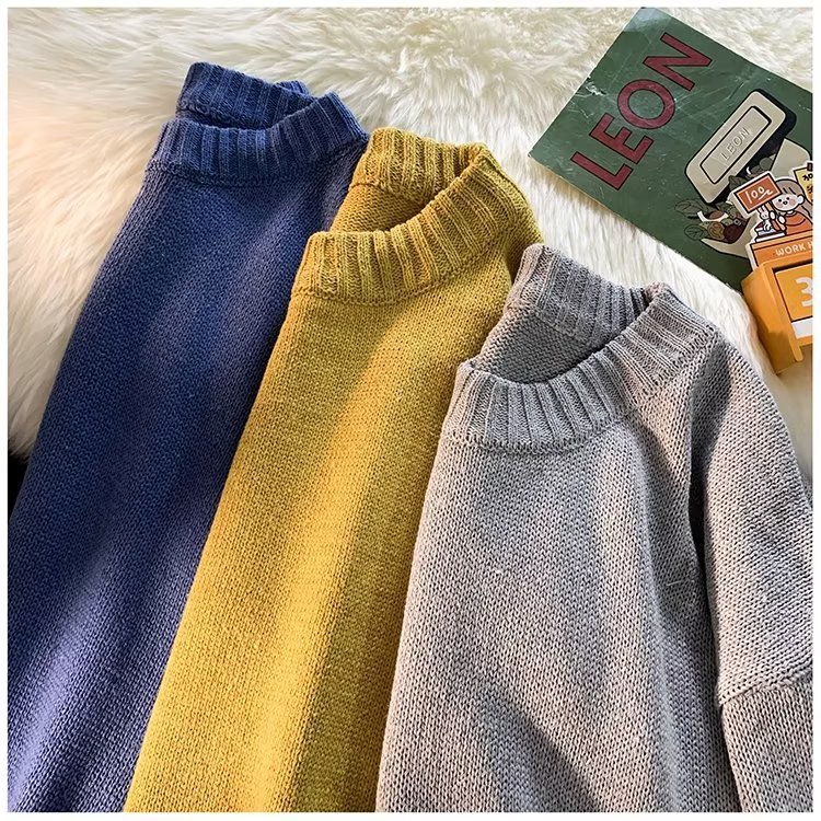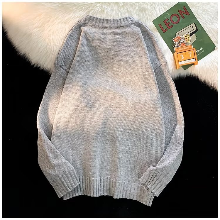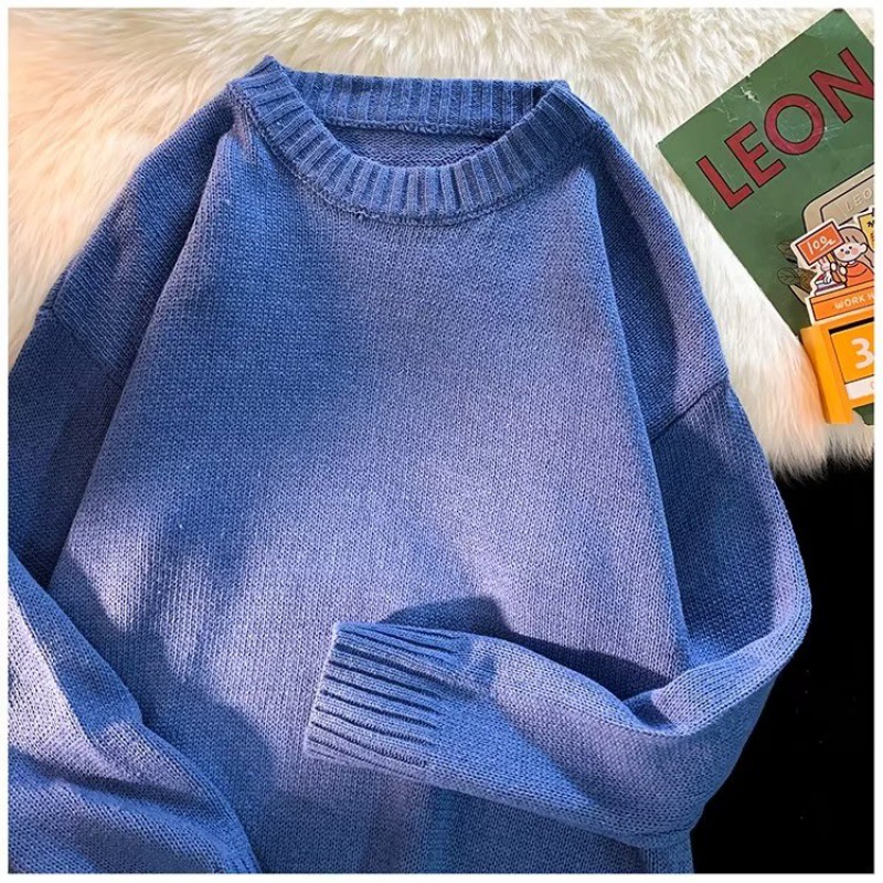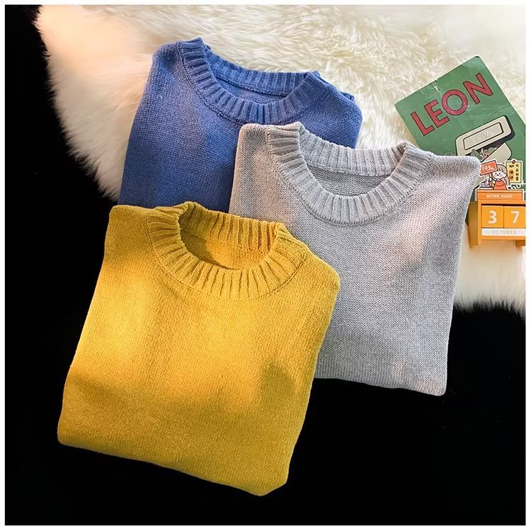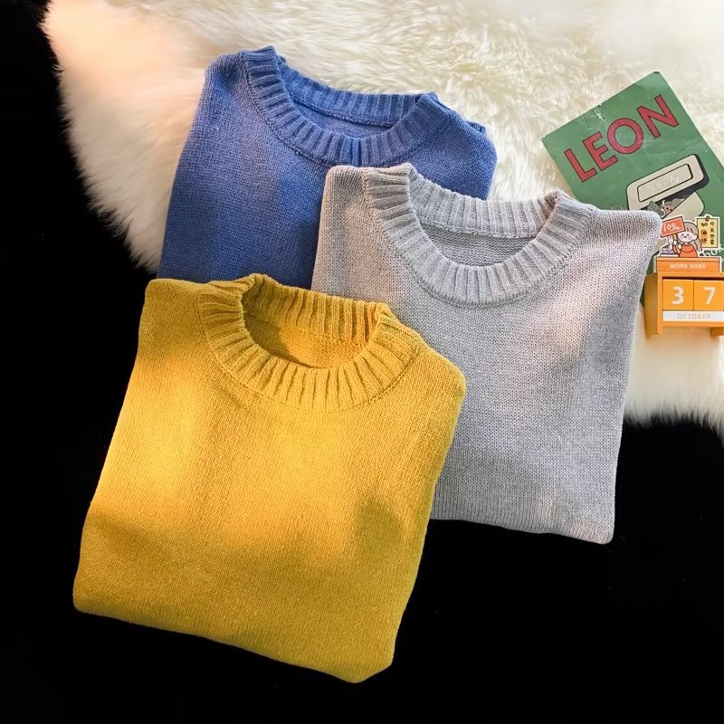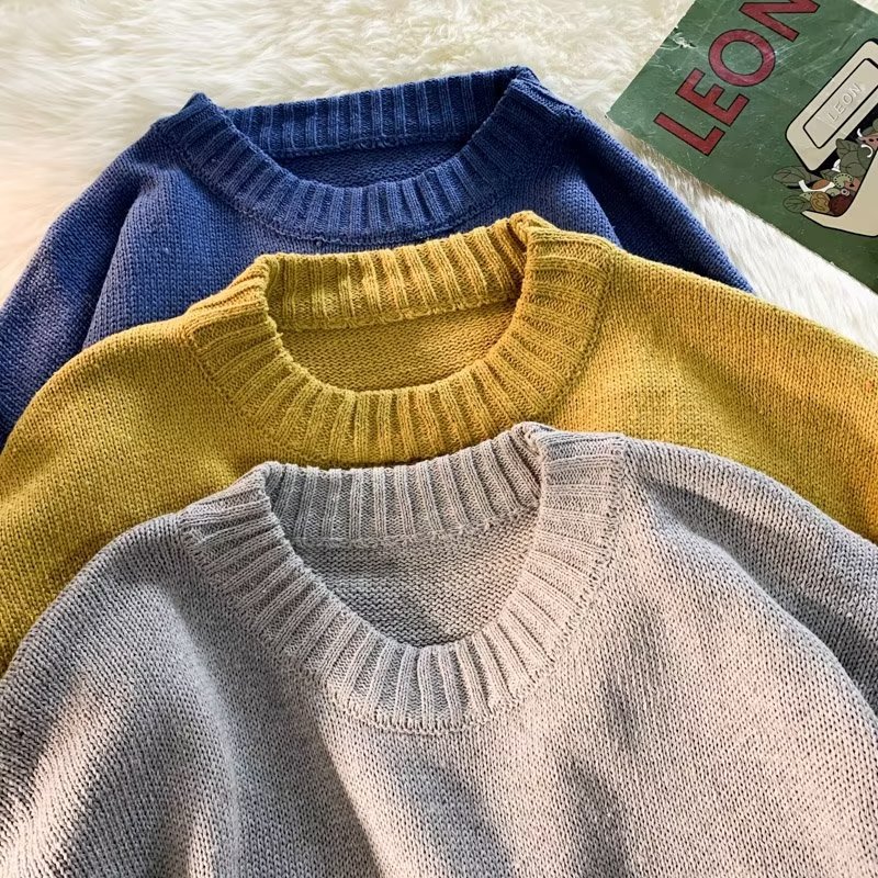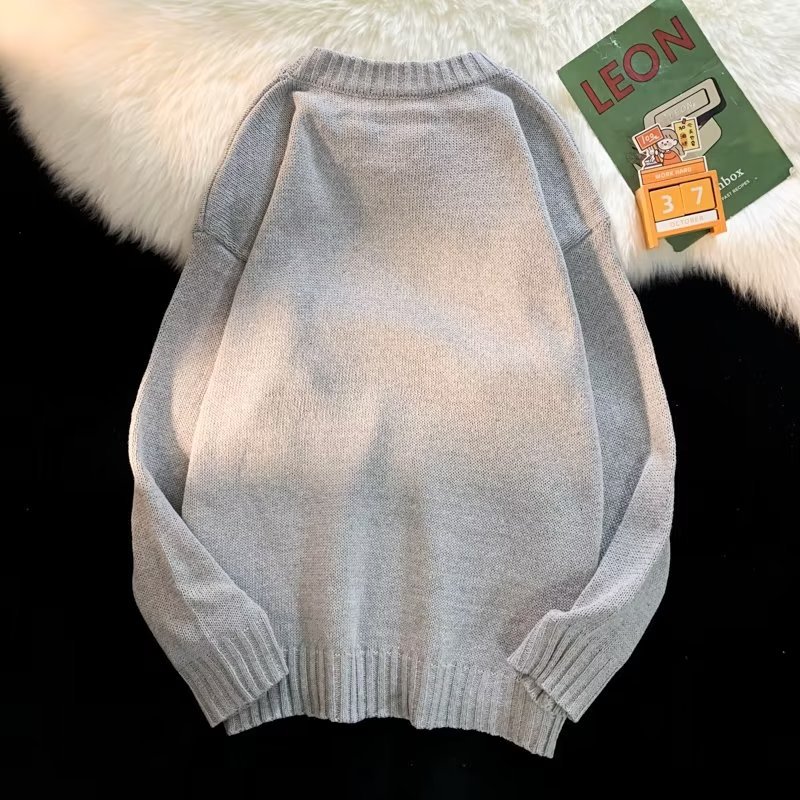 크루넥 스웨터 남성용 봄과 가을 홍콩 스타일 트렌디 브랜드 루즈한 탑 남성용 솔리드 컬러 심플 모든 매치 캐주얼 스웨터스토어 가기