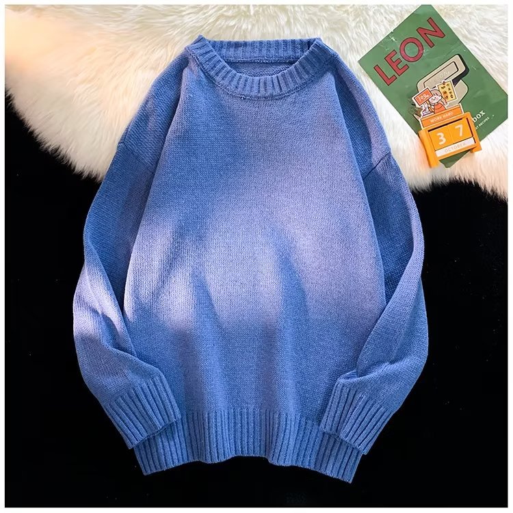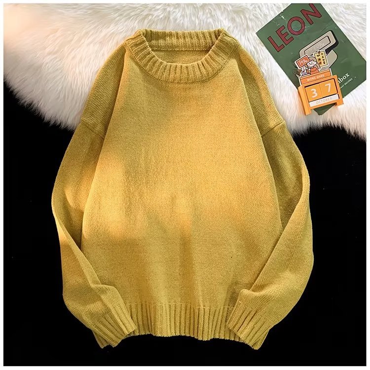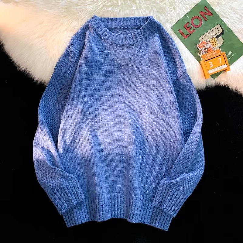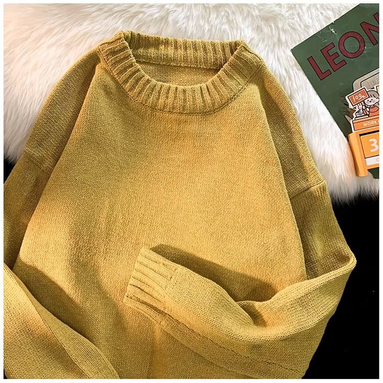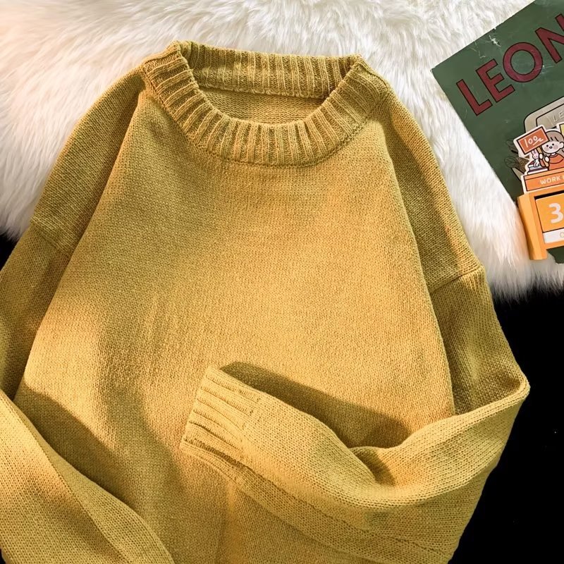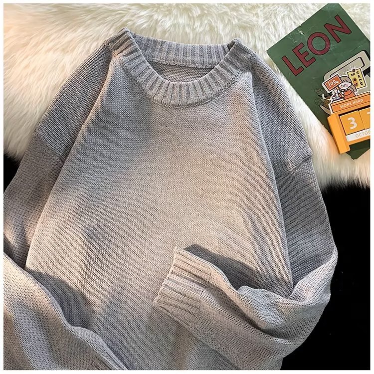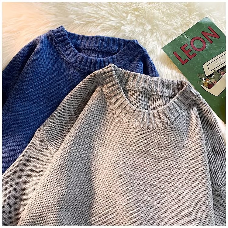 크루넥 스웨터 남성용 봄과 가을 홍콩 스타일 트렌디 브랜드 루즈한 탑 남성용 솔리드 컬러 심플 모든 매치 캐주얼 스웨터