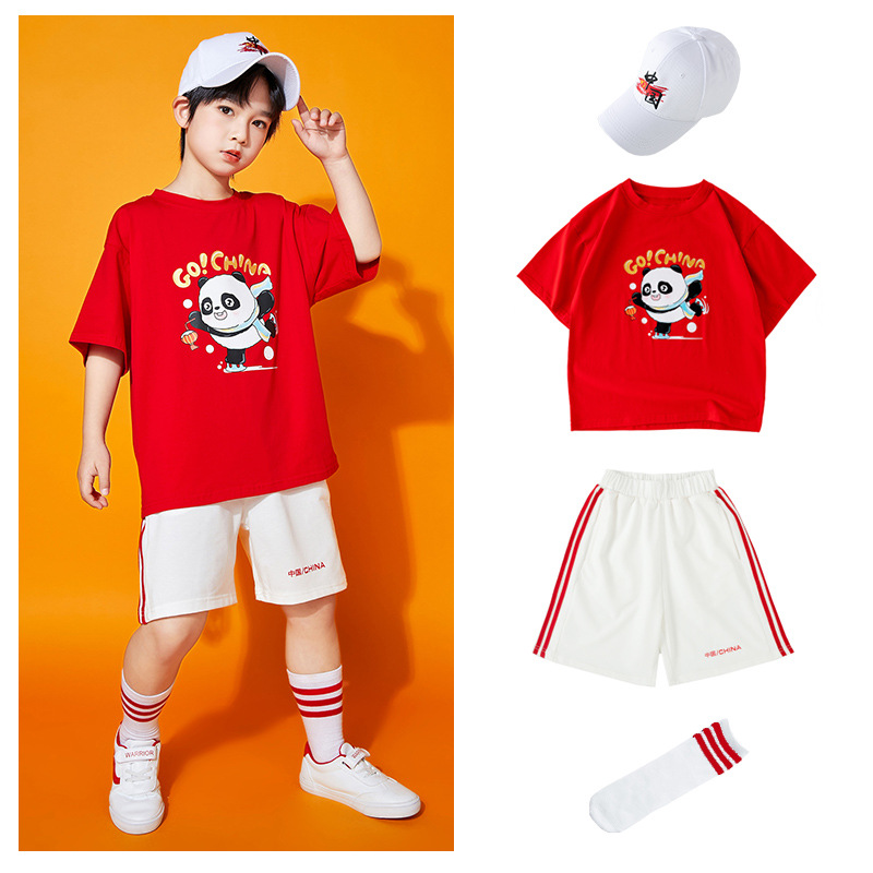 • 8809 레드 팬더 반팔 + 8206 화이트 반바지 + 화이트 중국 야구 모자