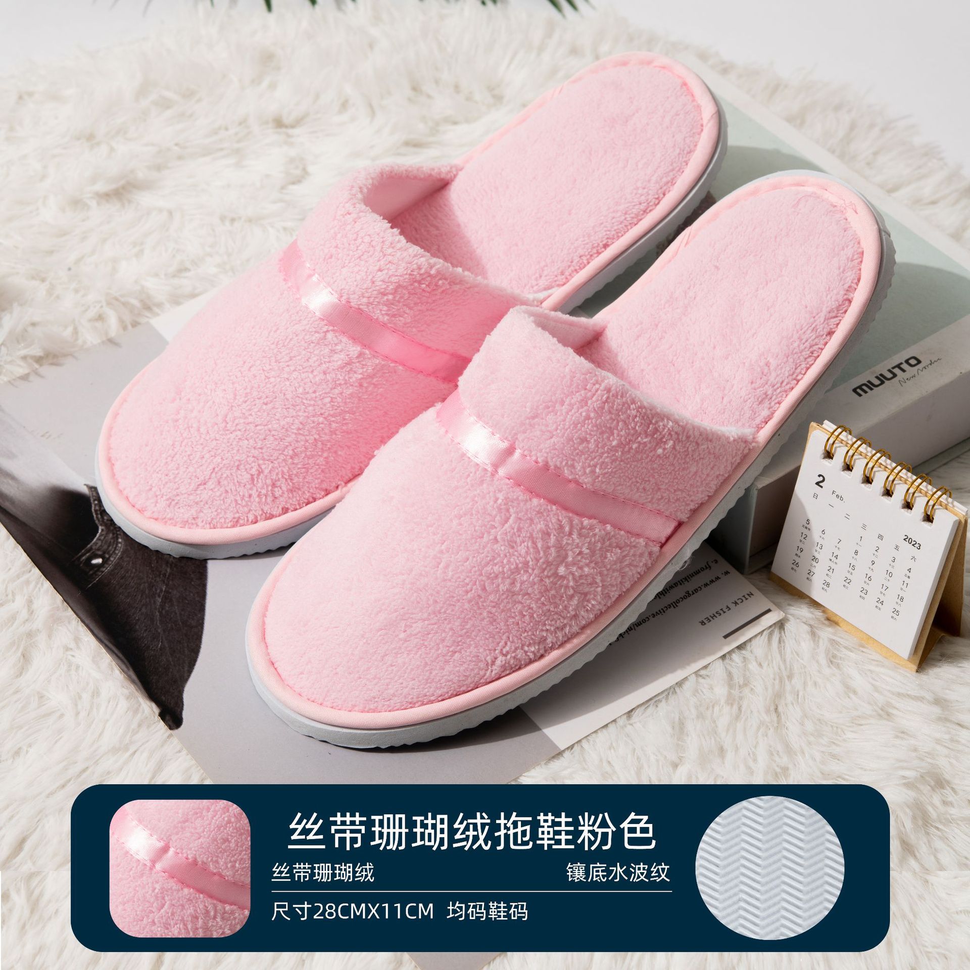 도매 호텔 슬리퍼 산호 벨벳 고급 두꺼운 미끄럼 방지 호텔 객실 가정용 환대용 일회용이 아닌 공장스토어 가기