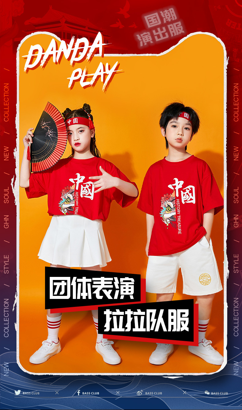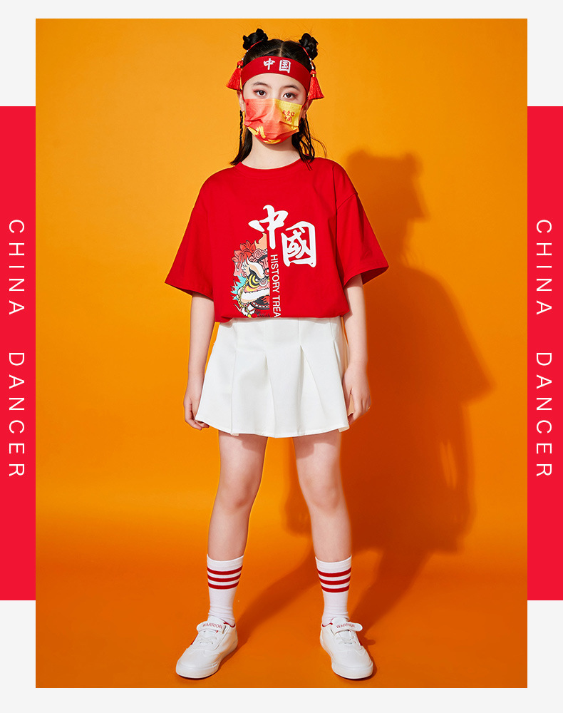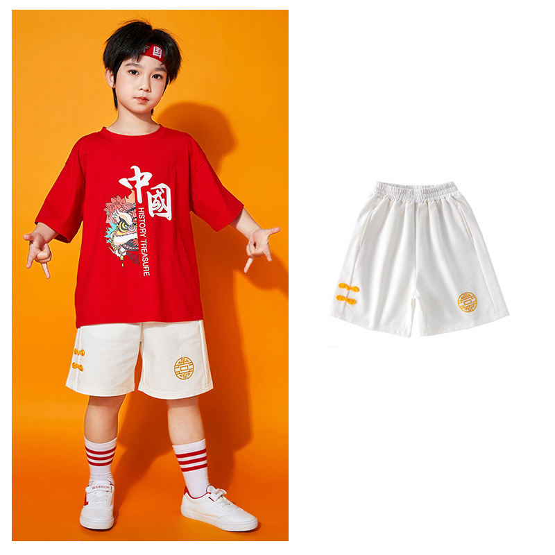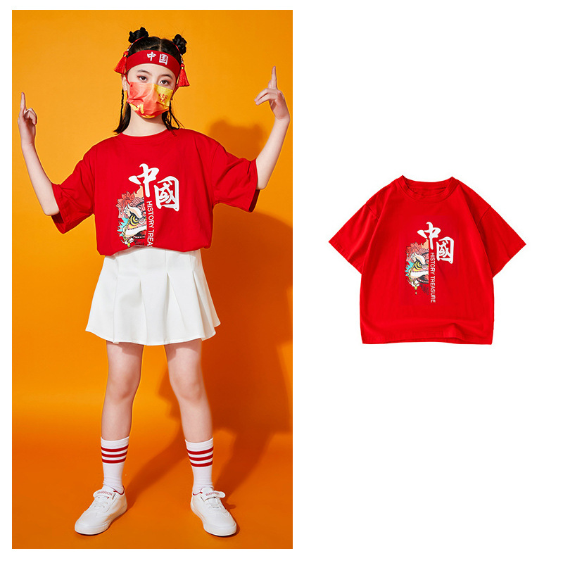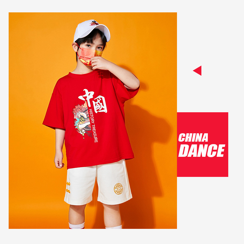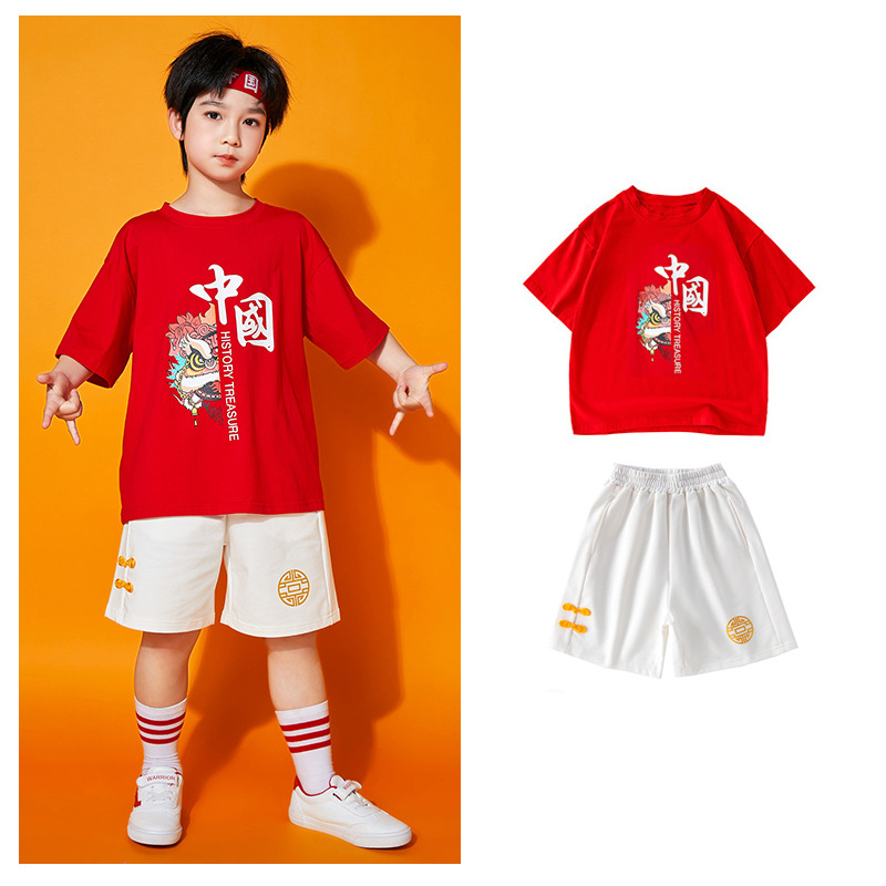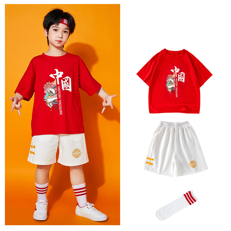 초등학생을위한 어린이 댄스 공연 의류 여름 유치원 중국 스타일 사자 댄스 공연 스포츠 회의 수업 의류 세트