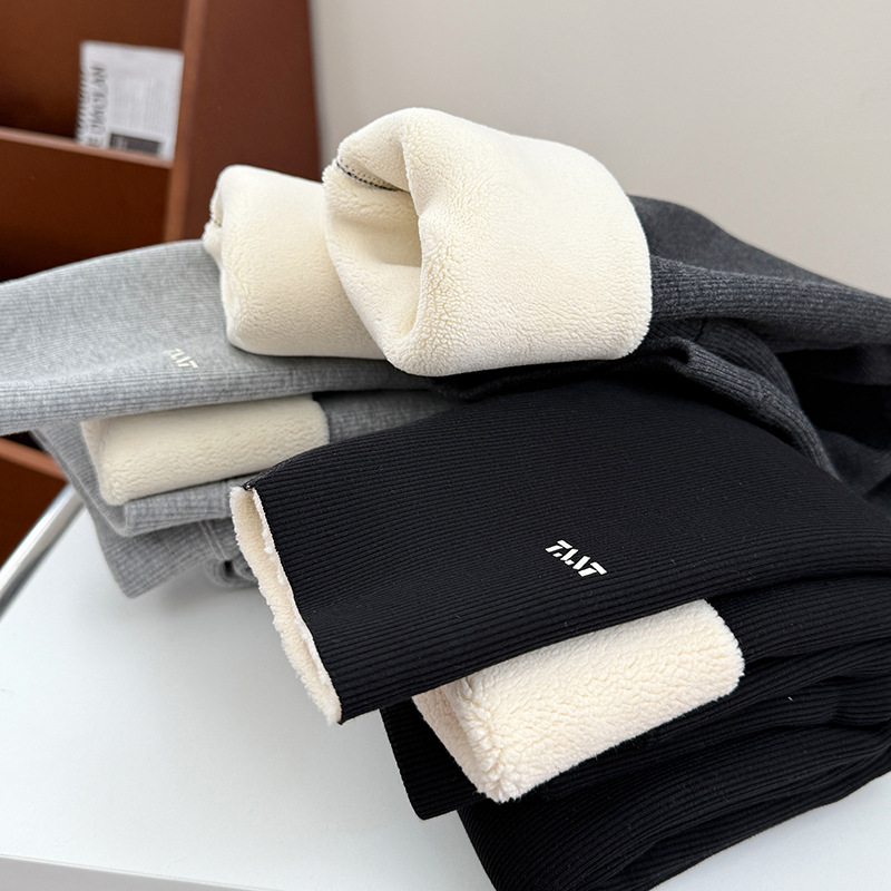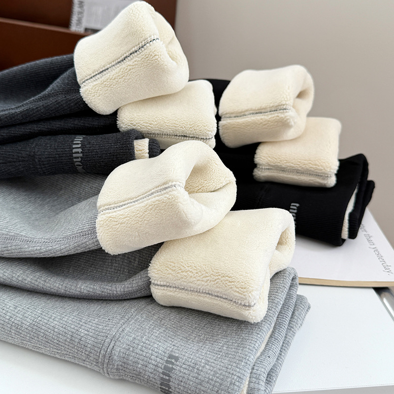 咘米儿一体加厚螺纹奥粒绒儿童打底裤新款学生纯棉高腰女童外穿裤