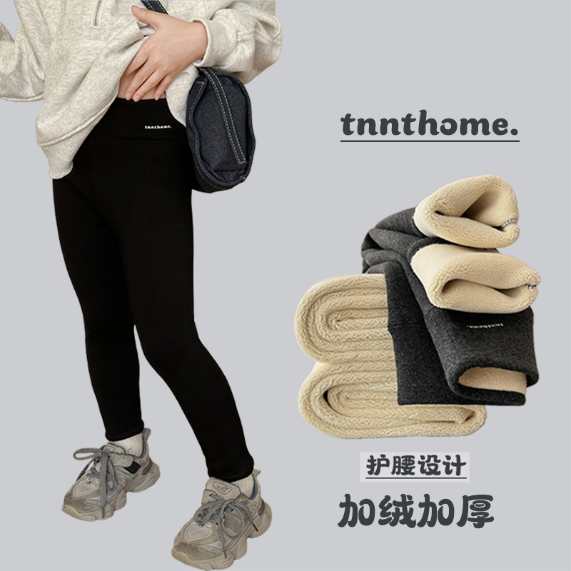 咘米儿女童打底裤秋冬加绒加厚韩版羊羔绒高腰纯棉外穿学生一体裤