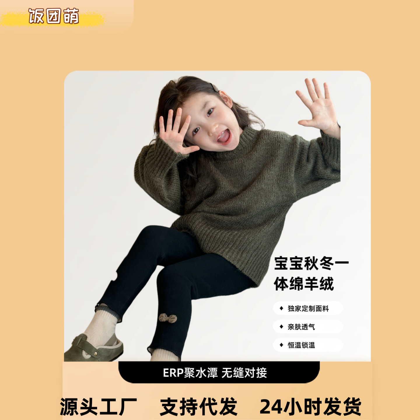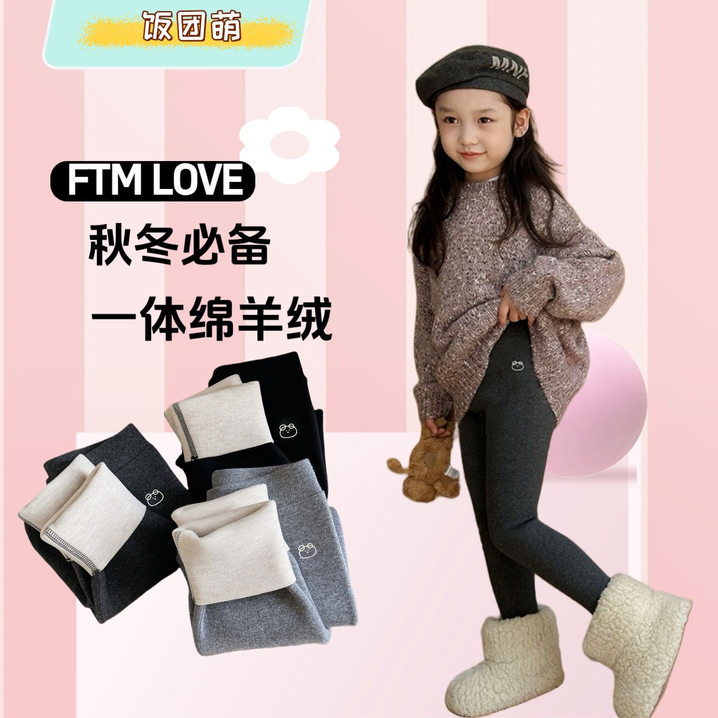 饭团萌女童打底裤秋冬加绒加厚显瘦韩版纯棉外穿羊羔绒学生一体裤