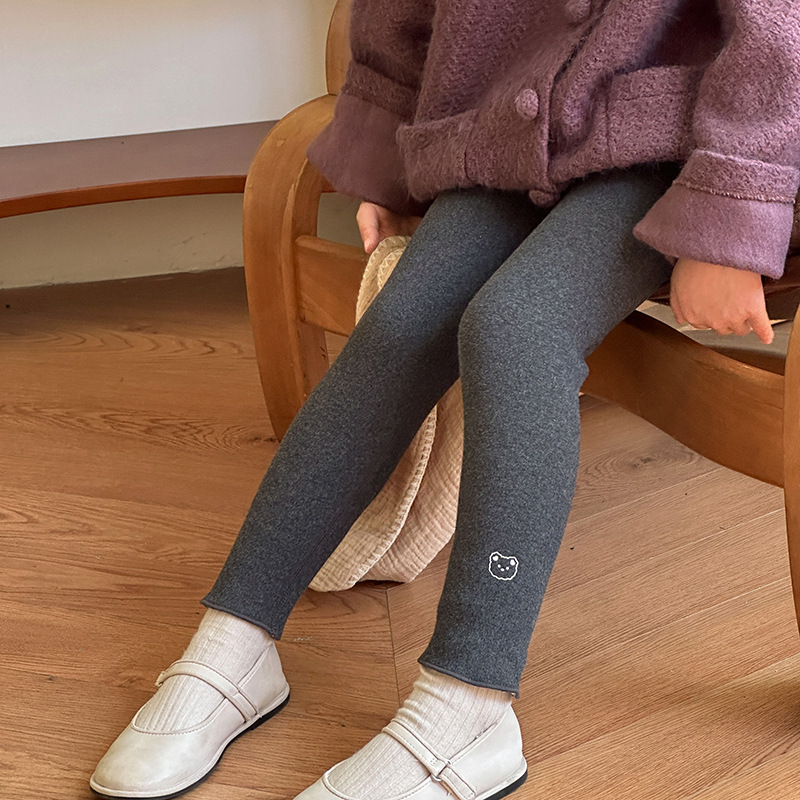 우미어 플러스 벨벳 아동용 레깅스 여아용 두꺼운 자수 아기 일체형 벨벳 순면 바지 한국 스타일 두꺼운스토어 가기