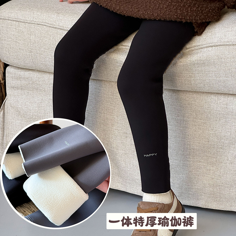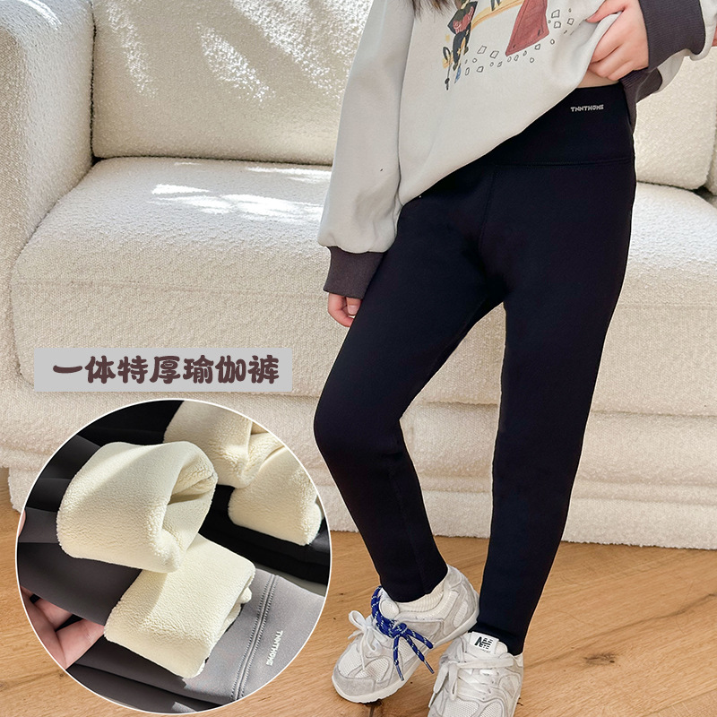 咘米儿新款一体加厚儿童鲨鱼裤学生显瘦加绒裤外穿高腰女童瑜伽裤