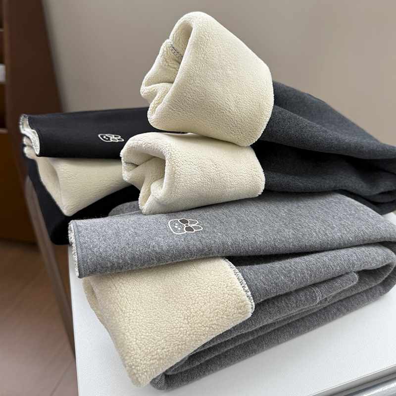 咘米儿冬季加厚儿童裤子外穿韩版学生刺绣奥粒绒纯棉女童打底裤潮
