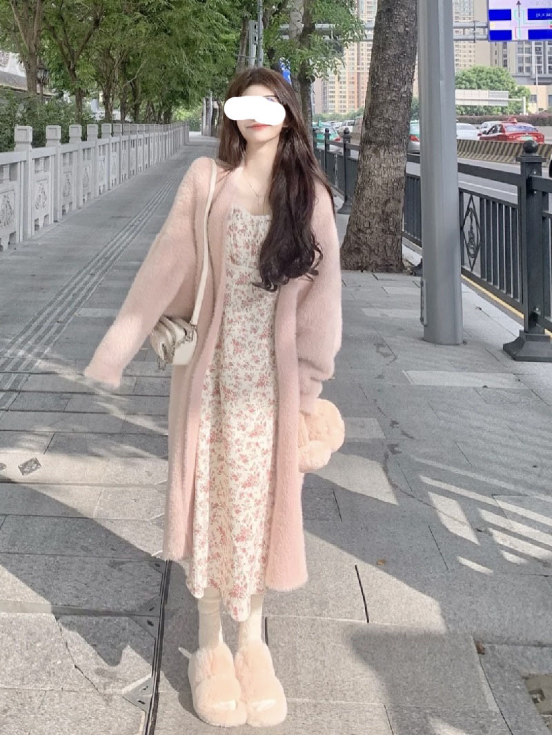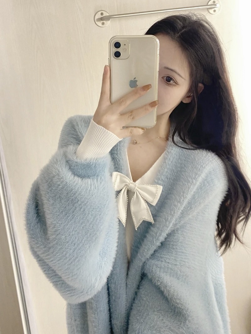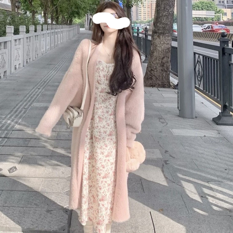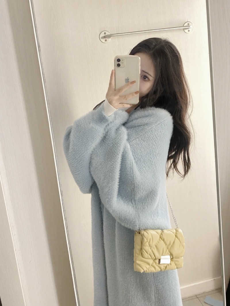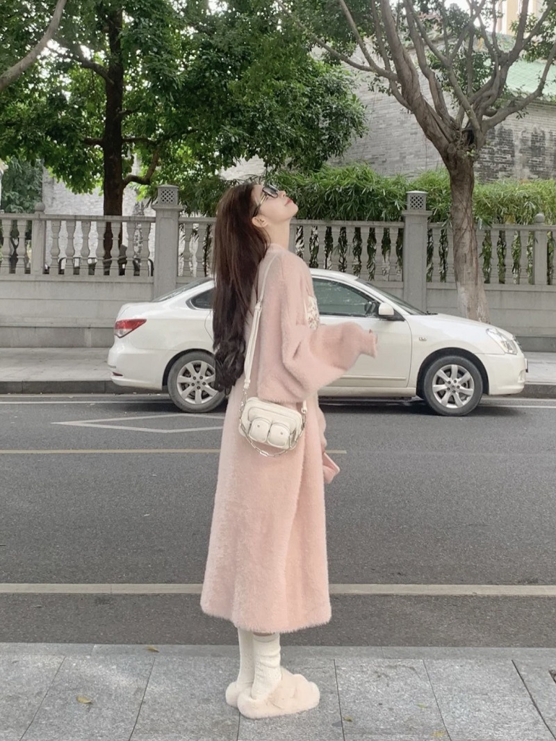 게으른 스타일 중간 길이 무릎 길이 밍크 양털 스웨터 코트 여성의 느슨한 가을과 겨울 빈티지 시크 니트 가디건 코트