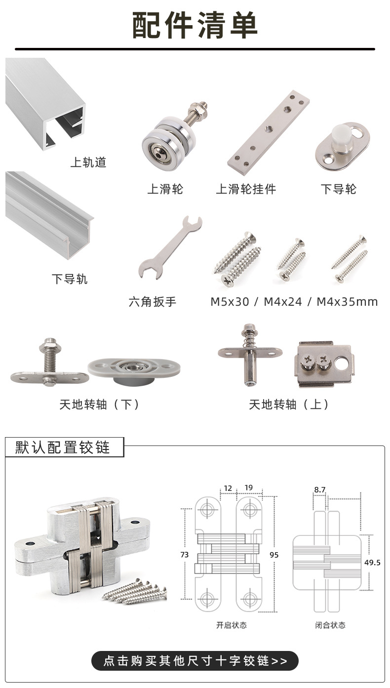 실내 파티션 접이식 도어 하드웨어 액세서리 침실 발코니 옷장 범용 교수형 휠 푸시 풀 번역 접이식 도어 슬라이드 레일스토어 가기