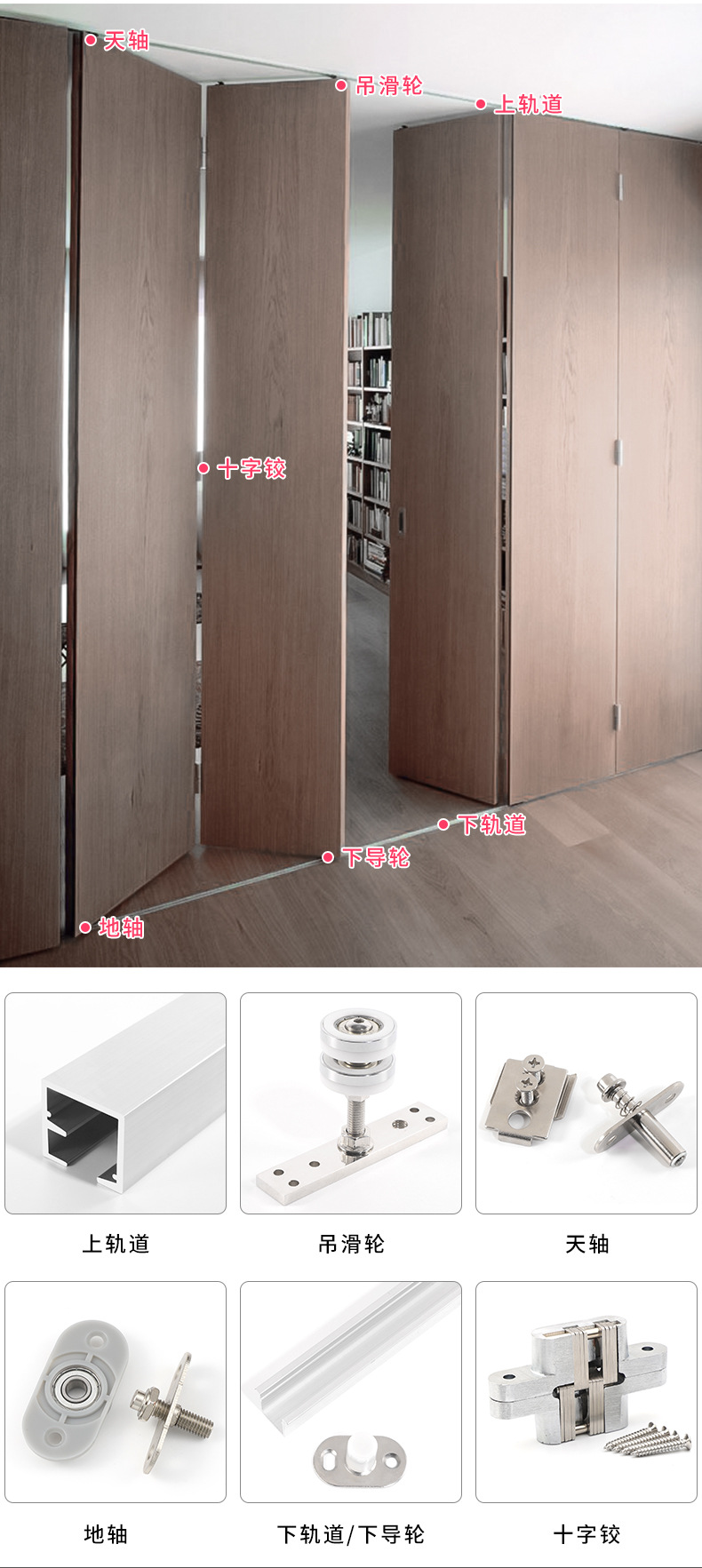 실내 파티션 접이식 도어 하드웨어 액세서리 침실 발코니 옷장 범용 교수형 휠 푸시 풀 번역 접이식 도어 슬라이드 레일