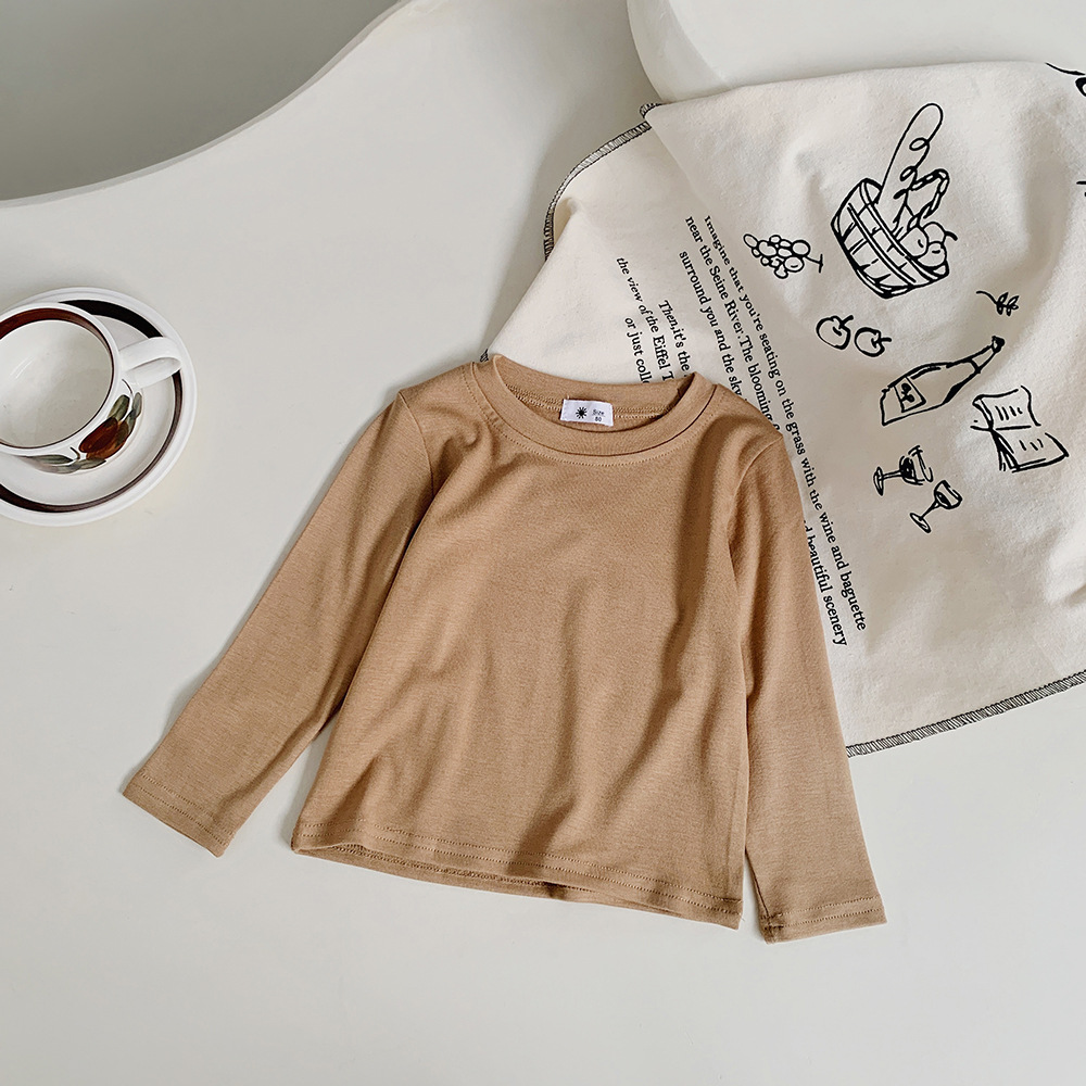 남아용 긴팔 티셔츠 2025년 가을 신상 아동용 단색 이너웨어 중대형 아동용 트렌디 브랜드 풀오버 상의