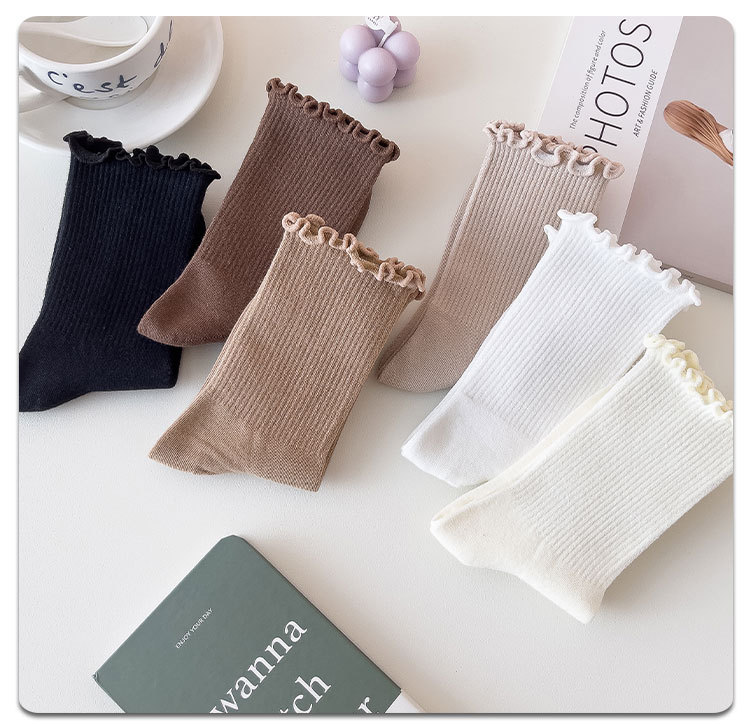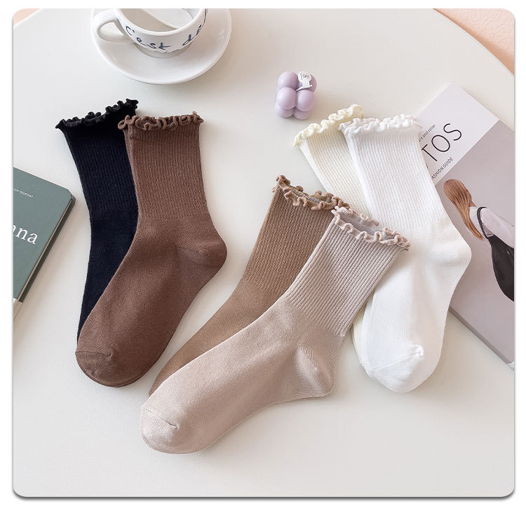 양말 여성용 따뜻한 다크 브라운 귀테 미드 테 양말 사계절 스타일 여성용 땀 흡수 스타킹 느슨한 입 문 양말 면