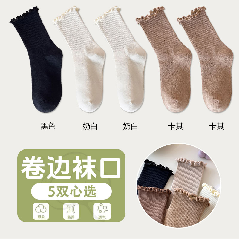 • 5켤레 [블랙+밀크화이트2+카키2]