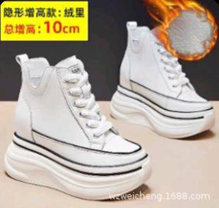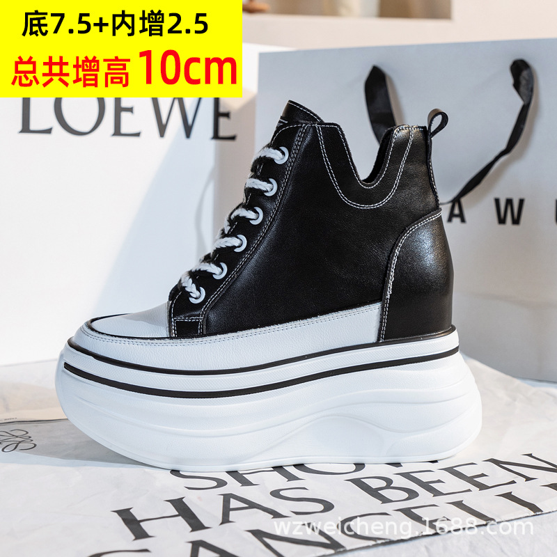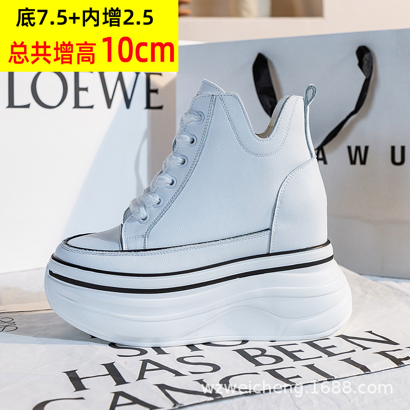 두꺼운 밑창 여성 운동화 2025 가을 신상 천연 가죽 하이탑 화이트 슈즈 캐주얼 다용도 키높이 여성화 10cm스토어 가기