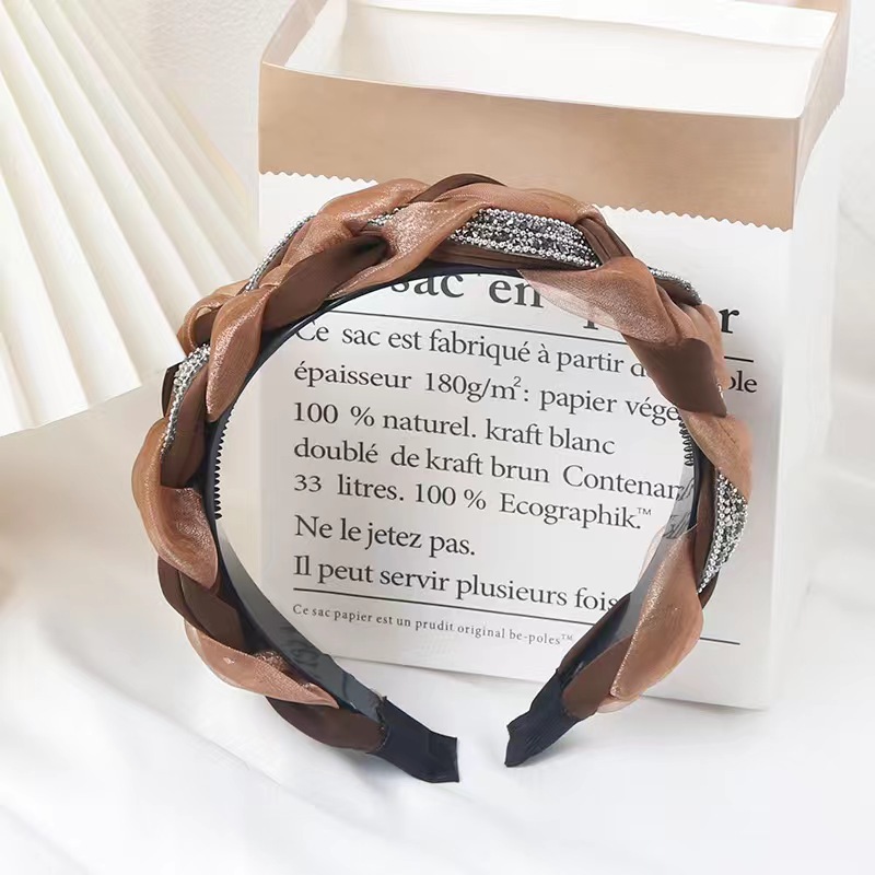 한국식 동대문 우아한 슈퍼 페어리 올 매치 다이아몬드 스트립 장식 블랙 헤어 밴드 챙 넓은 헤어 스탬프 여성용 손으로 짠 헤드 밴드