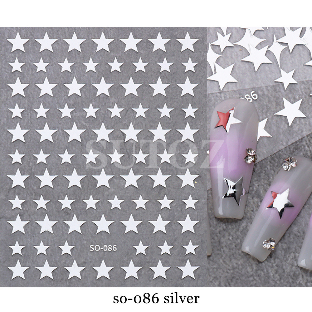 2022 새로운 네일 아트 스티커 철자 저녁 뜨거운 간단한 실버 다섯개 별 비료 다시 접착 손톱스토어 가기