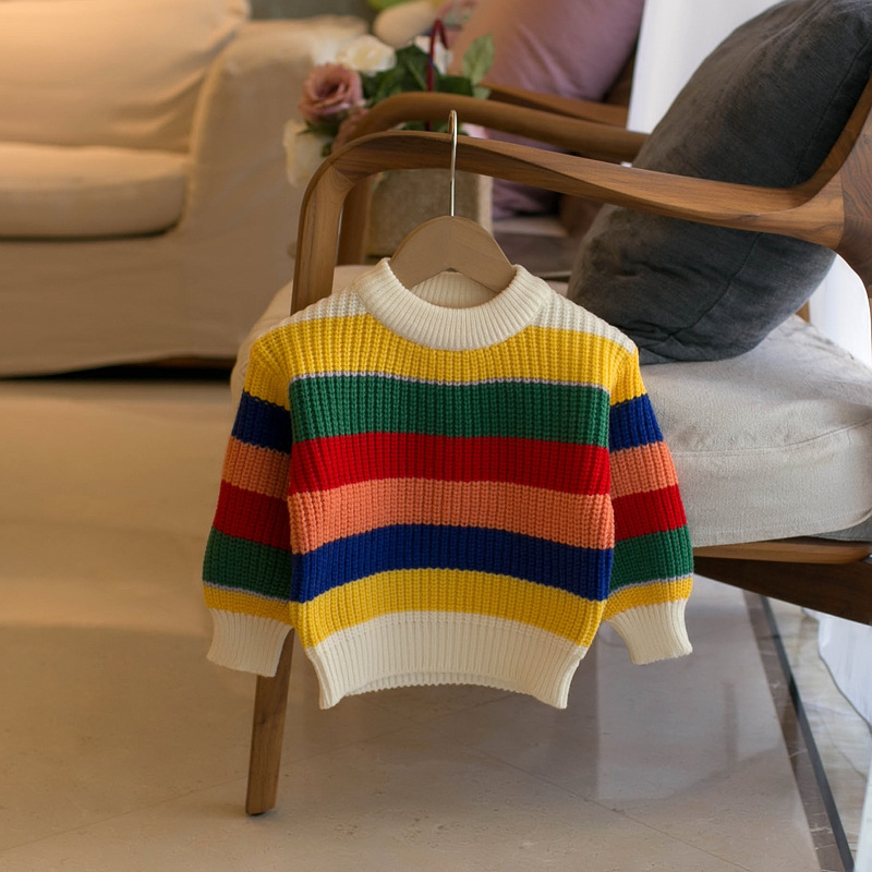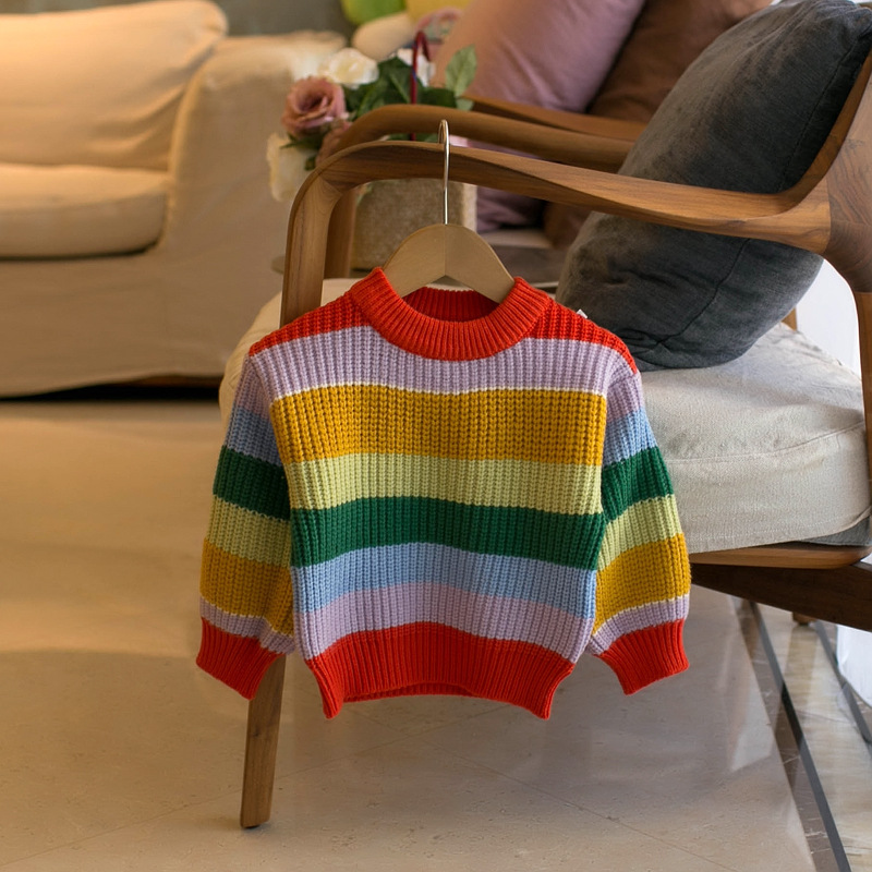 Dropshipping 가을, 겨울 한국 스타일 귀여운 어린이 컬러 블록 멀티 컬러 라운드 넥 풀오버 두꺼운 스웨터 J276