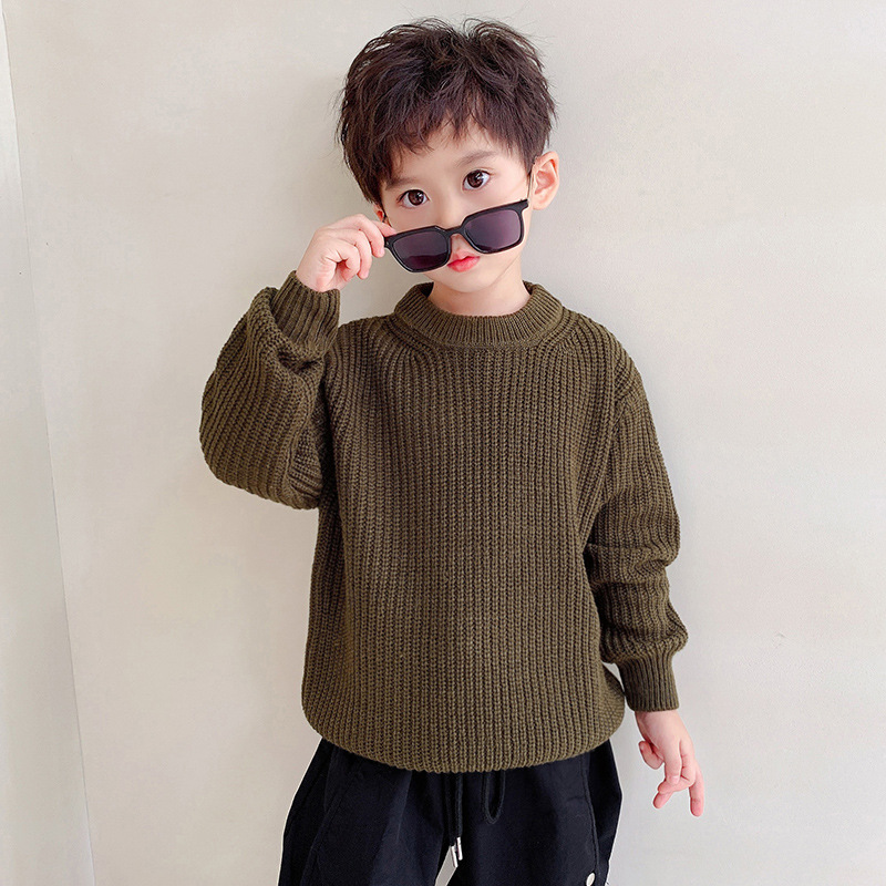 남아용 2025 겨울 신상품 두꺼운 니트 스웨터, 중대형 어린이용 라운드넥 두꺼운 니트웨어, 어린이용 두꺼운 스웨터 트렌드스토어 가기