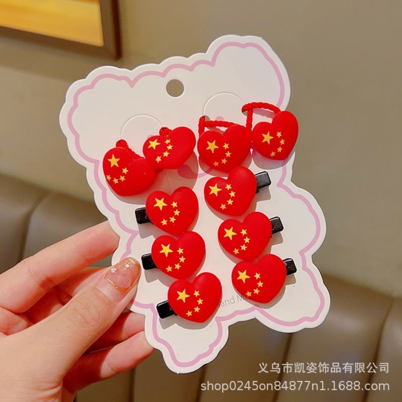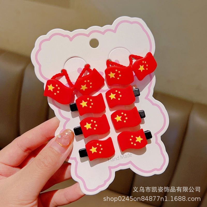 어린이 고무 밴드 헤어 타이 로프 귀여운 5 성급 붉은 깃발 머리핀 헤어 밴드 헤어 로프 어린 소녀 국경일 머리 장식