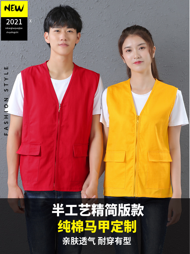 순면 자원 봉사 조끼 공공 복지 활동을위한 홍보 공식화 조끼 자원 봉사 광고 셔츠 작업복 인쇄 로고스토어 가기