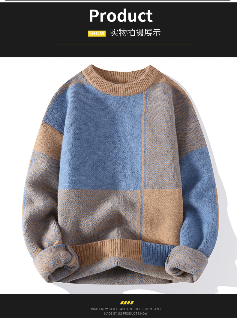 국경 간 대외 무역 배송 2024 새로운 남성 풀오버 스웨터 가을, 겨울 라운드 넥 새로운 흰색 바탕 스웨터