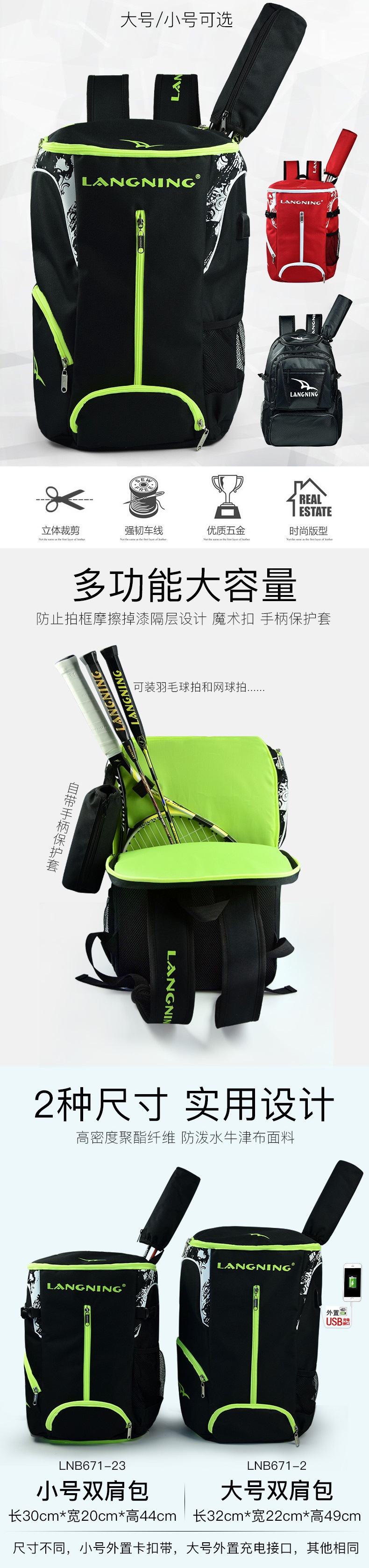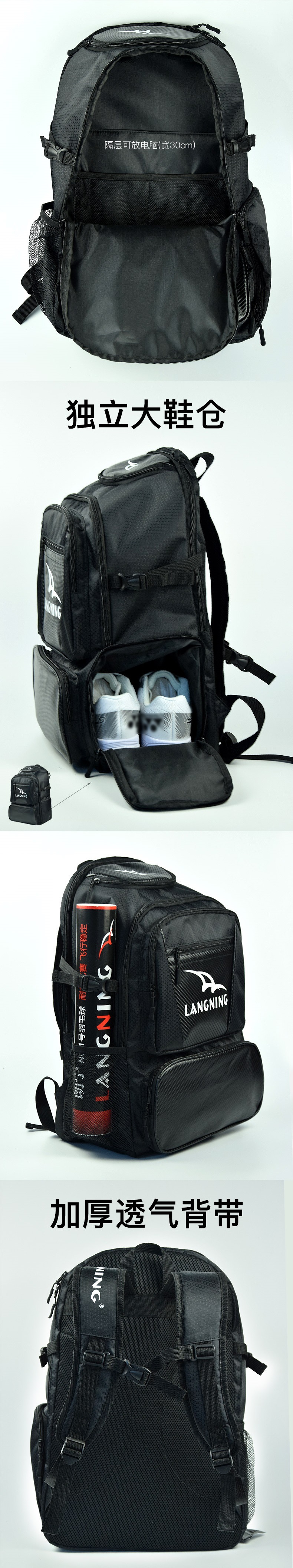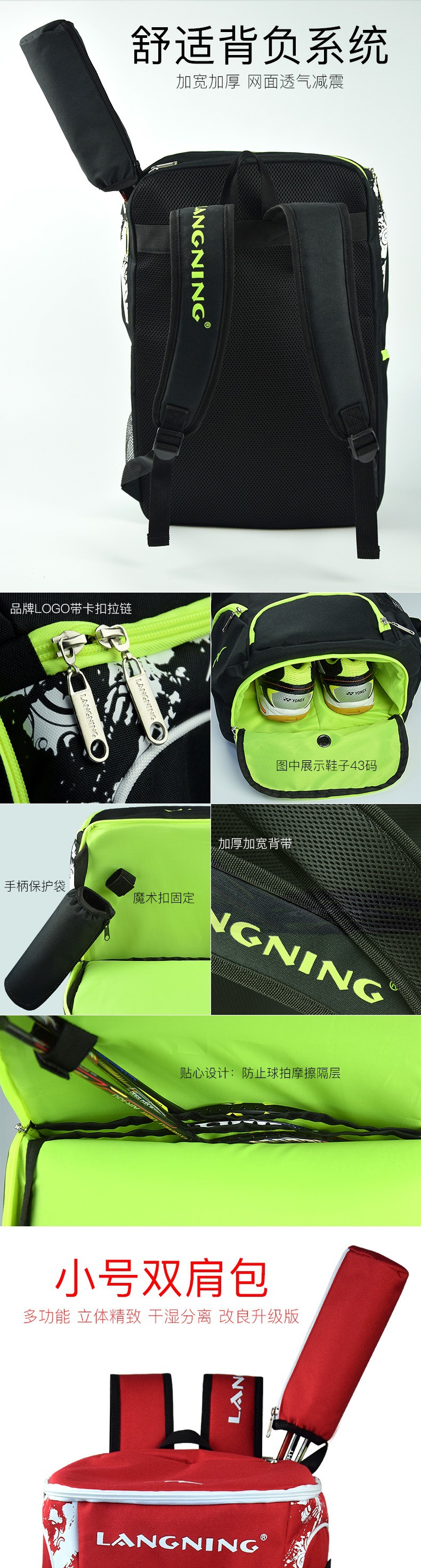 어린이 테니스 라켓 가방 어깨 배낭 장비 대용량 남녀 테니스 라켓 다기능 습식 및 건식 분리 보호