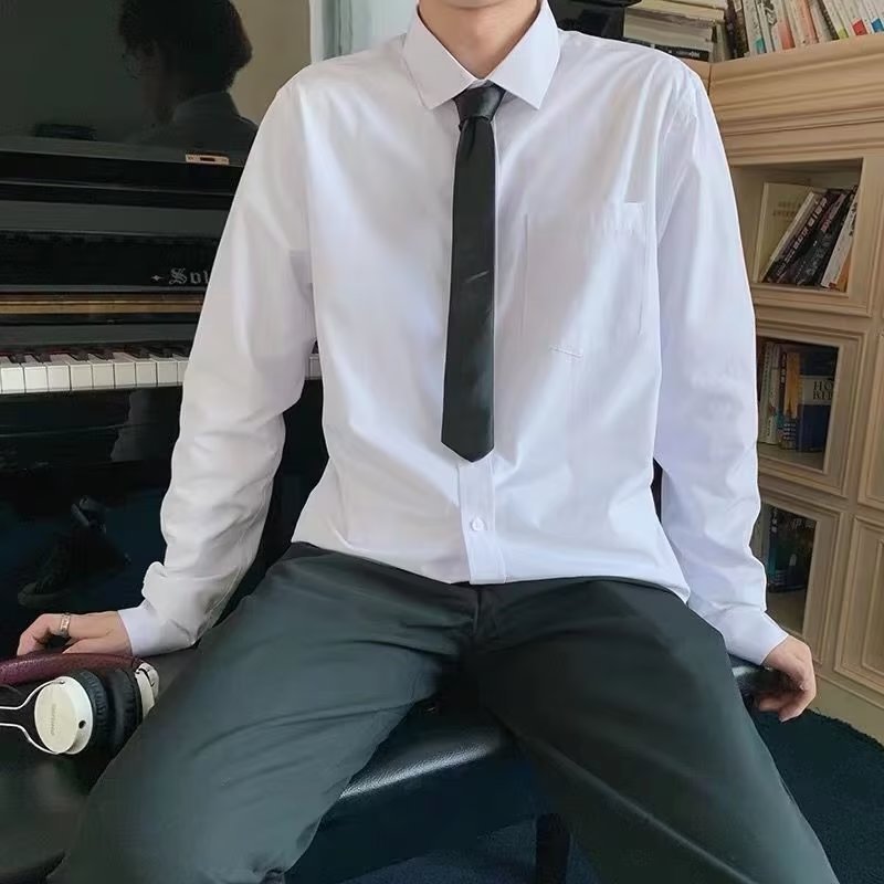 단색 긴 소매 셔츠 남성 학생 수업 의류 예술적 가을 간단한 하라주쿠 패션 청소년 인기 대학 스타일 셔츠스토어 가기