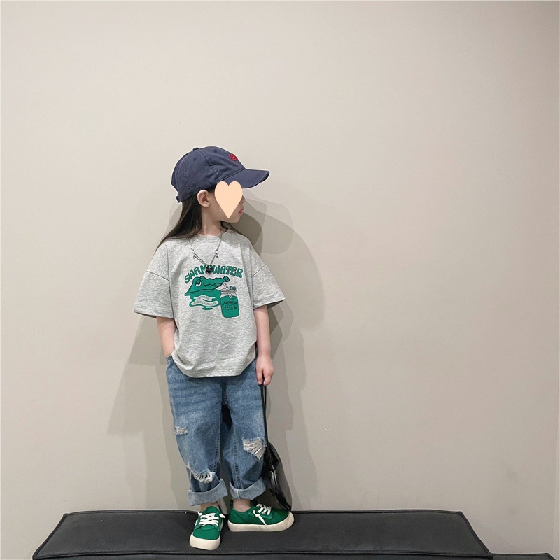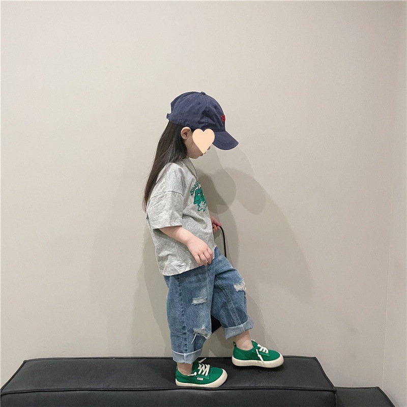 봄 가을 신제품 2025 한국판 남학생과 여학생을 위한 다용도 찢어진 청바지, 중소 어린이를 위한 유아용 루즈 팬츠