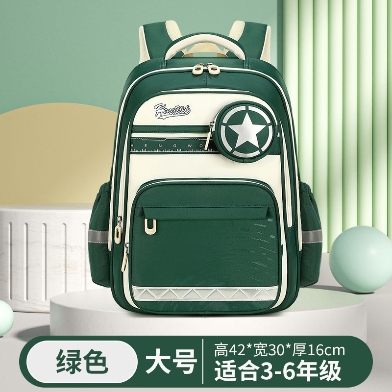 새로운 재고 도매 1-6 학년 학생 책가방 소년 소녀 대용량 튀는 어깨 구호 척추 가방스토어 가기