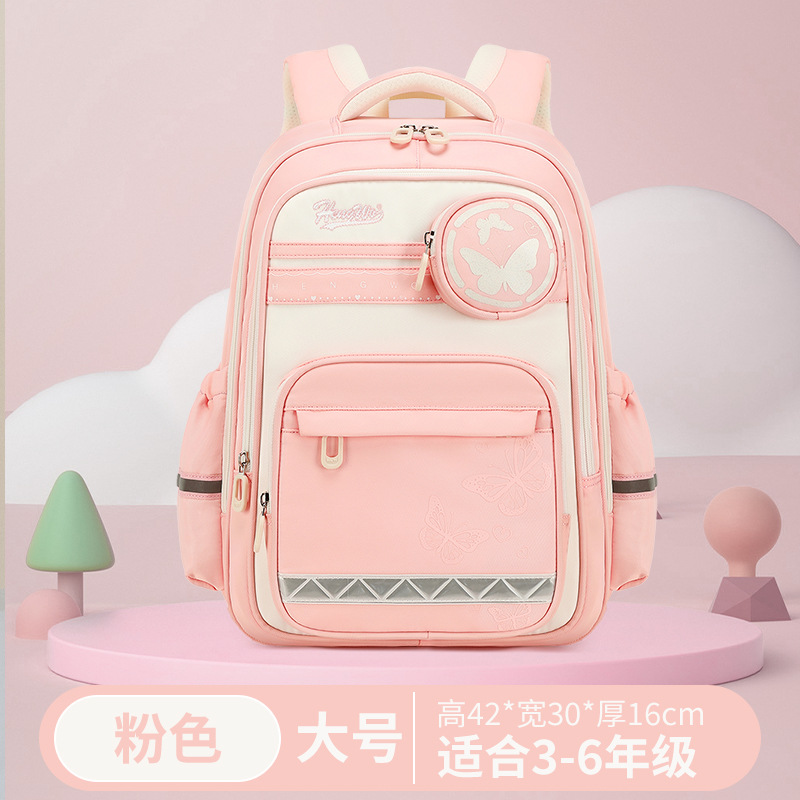 새로운 재고 도매 1-6 학년 학생 책가방 소년 소녀 대용량 튀는 어깨 구호 척추 가방