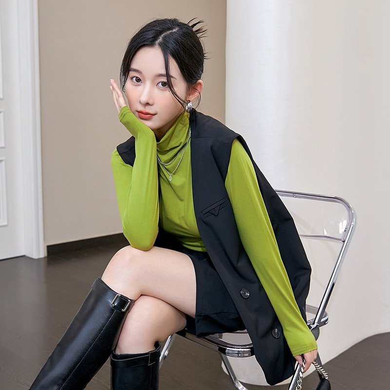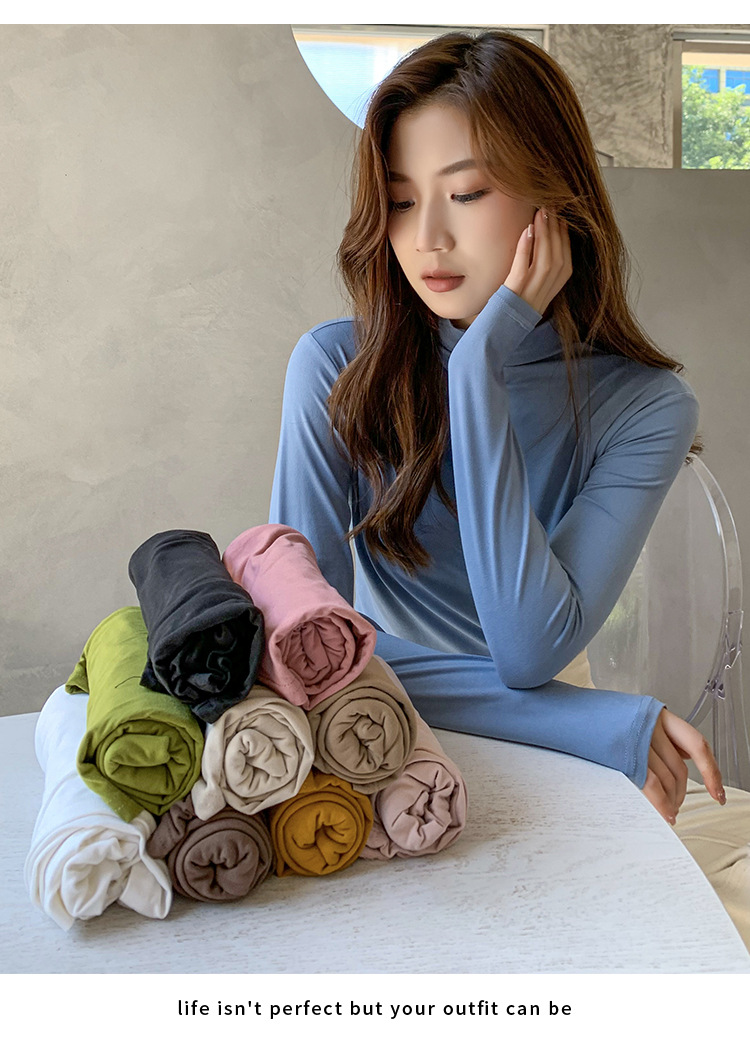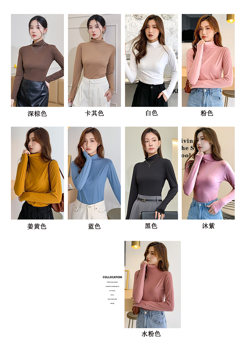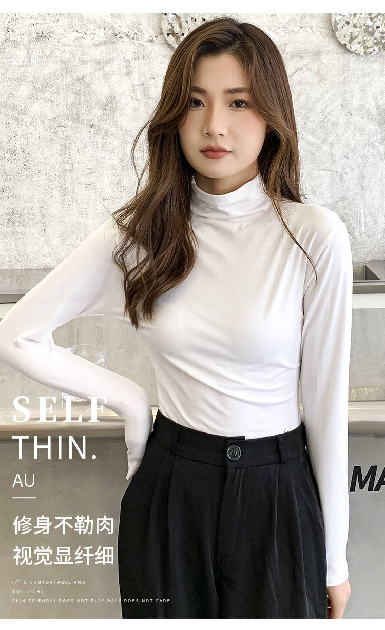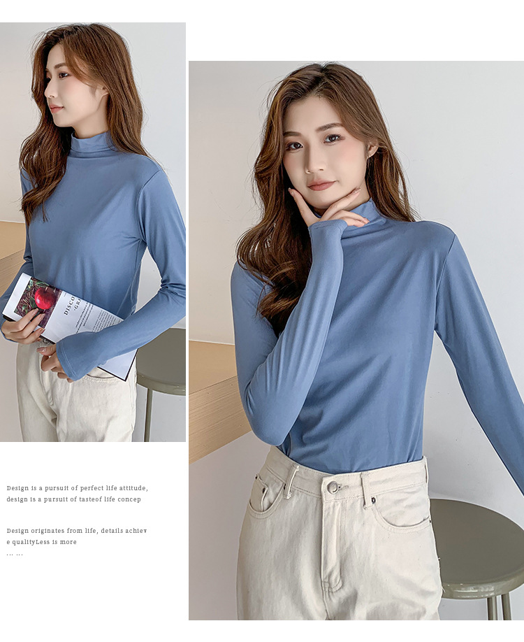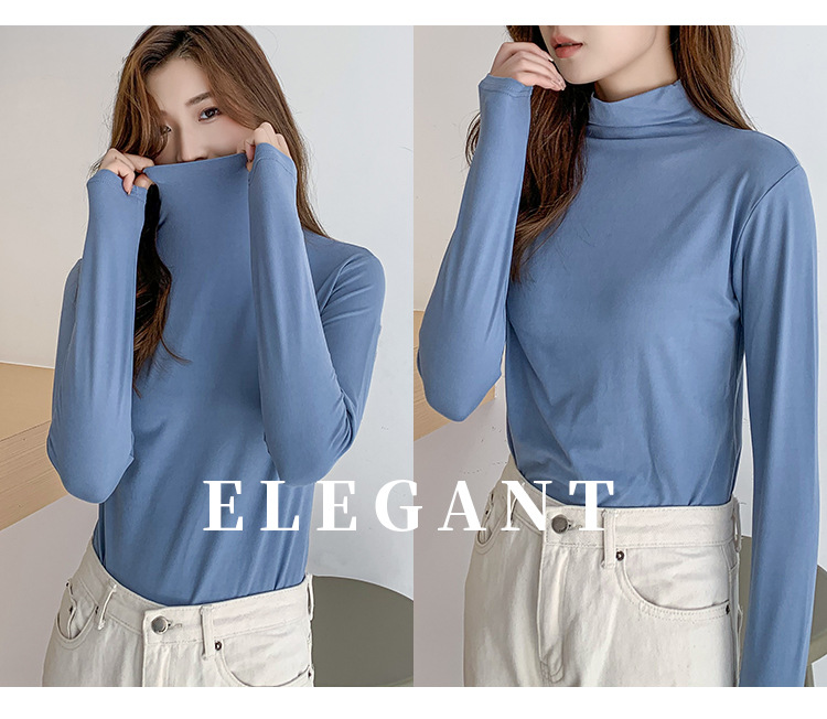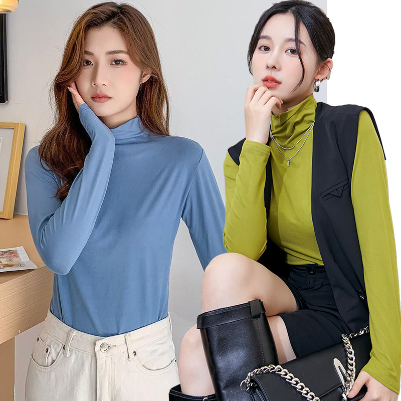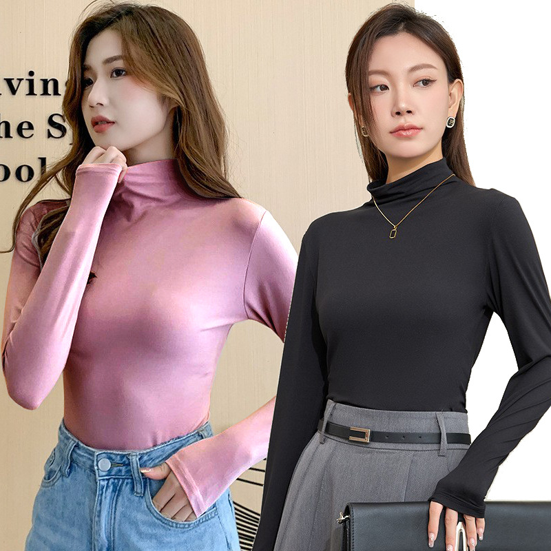 여성용 하프 터틀넥 마스크 셔츠, 가을 겨울 기모 밑단 셔츠, 슬림하고 따뜻한 아우터, 긴팔 티셔츠, 다용도 탑스토어 가기