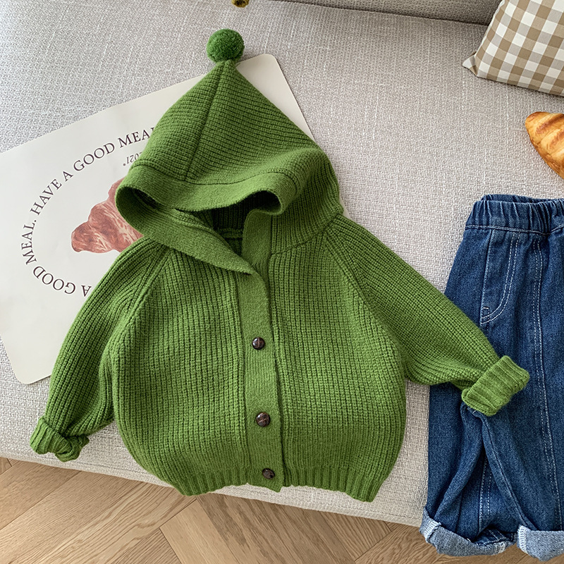 어린이 스웨터 0-6세 가을 남아 후드 니트웨어 여아 단색 가디건 아기 코트 CY658 짧은 스타일
