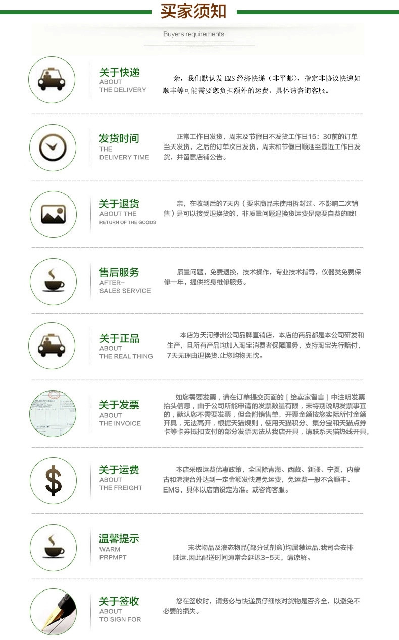 一般情况,有现货的产品,16点前的订单当天发出,之后的次日发出,仪器、检测箱和个别产品或遇特殊情况发货时间可能会慢点,请先咨询客服确定。我们会尽量快点安排,不作绝对保证。遇周六日和节假日,顺延至最近工作日发货。亲要是无法接受,请不要拍下哦。客服正常在线时间周一到周五8:30至17:20,。