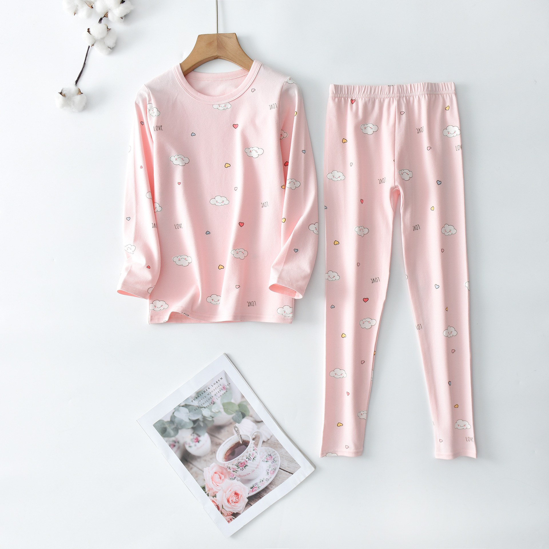 여아용 가을옷 세트 A급 면 소녀용 보온 속옷 어린이 가을옷 중학생용 이너웨어 잠옷
