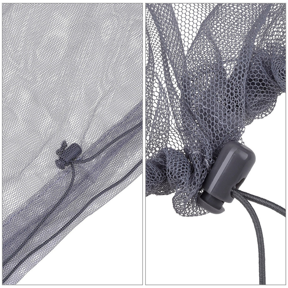 拉绳式闭合颈部拥有足够的长度覆盖衣领,每平方厘米81个网孔。可打包进方便携带的附随微型小袋里,携带方便