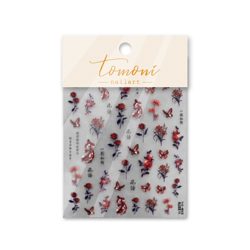 Tomoni 얇은 힘든 네일 아트 스티커 뜨거운 일본 복고풍 2D 네일 스티커 어두운 꽃과 나비 네일 아트 보석 도매스토어 가기